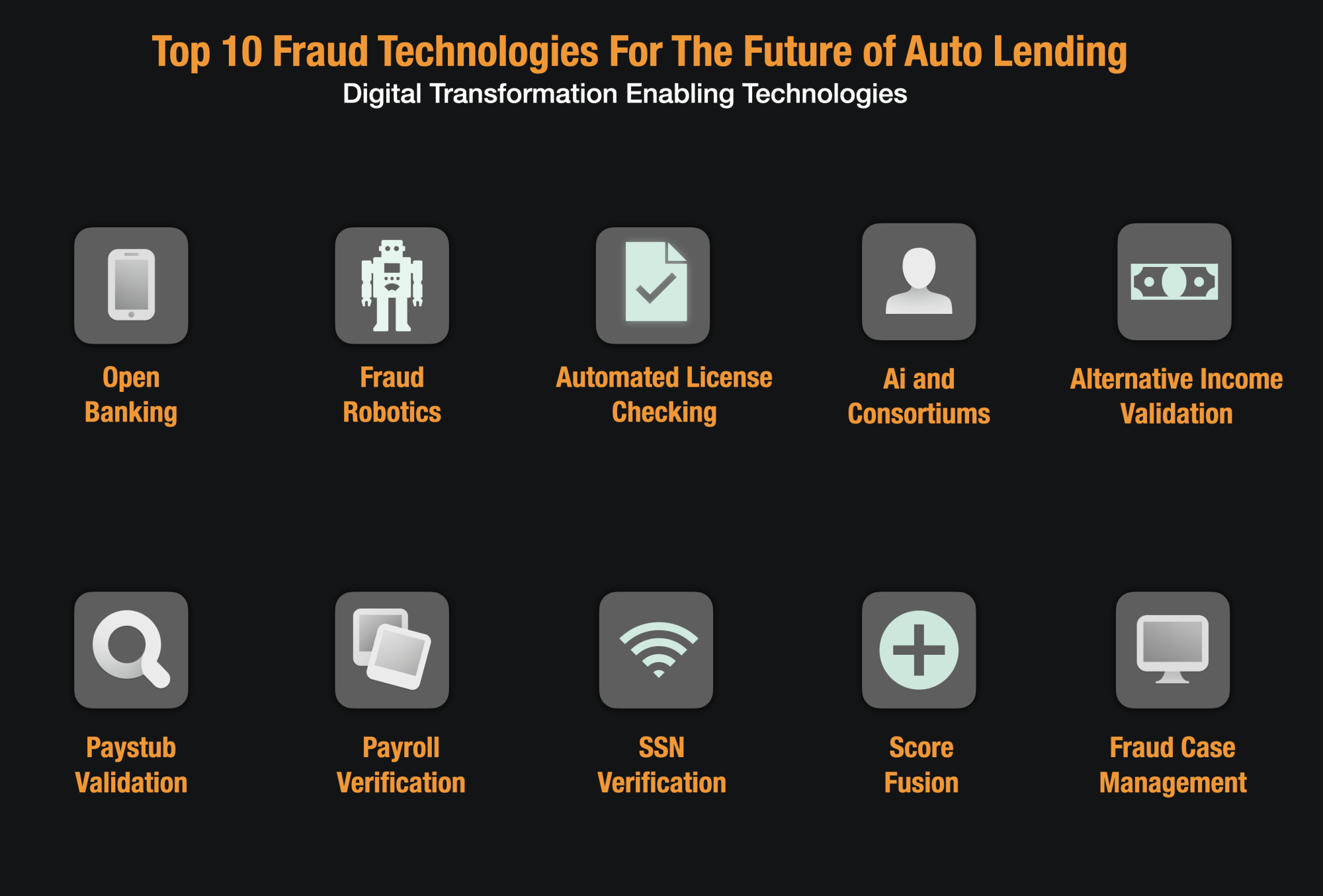 Over the next 3 years, auto lenders will adopt this technology to create more scalable and efficient fraud operations. Fraud case management will provide queue management, rule writing capability, suspicious case management, and fraud reporting all under a single application for all underwriters and risk managers.