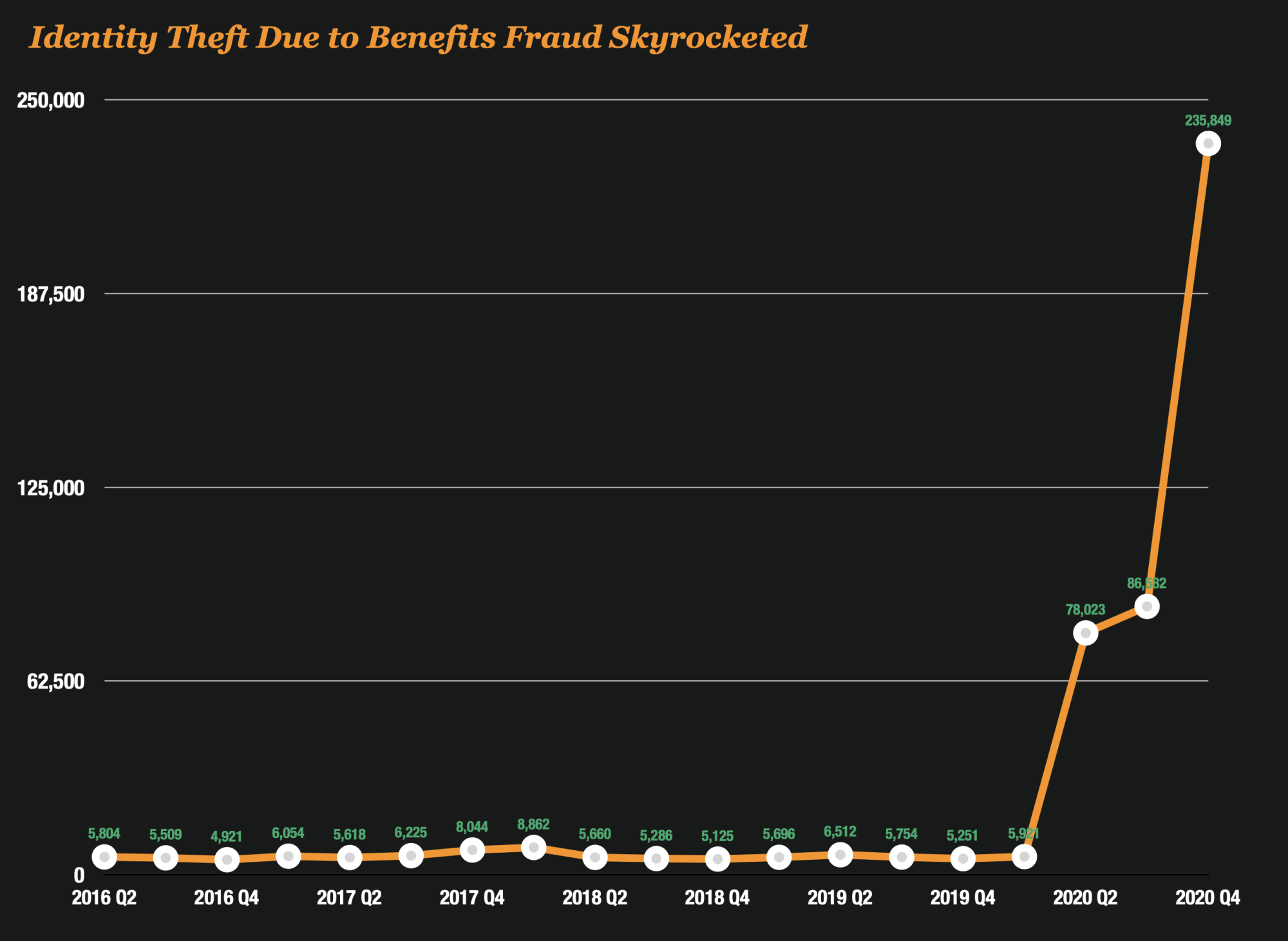 Unemployment fraud rings drove the dramatic increase in identity theft claims throughout the year.