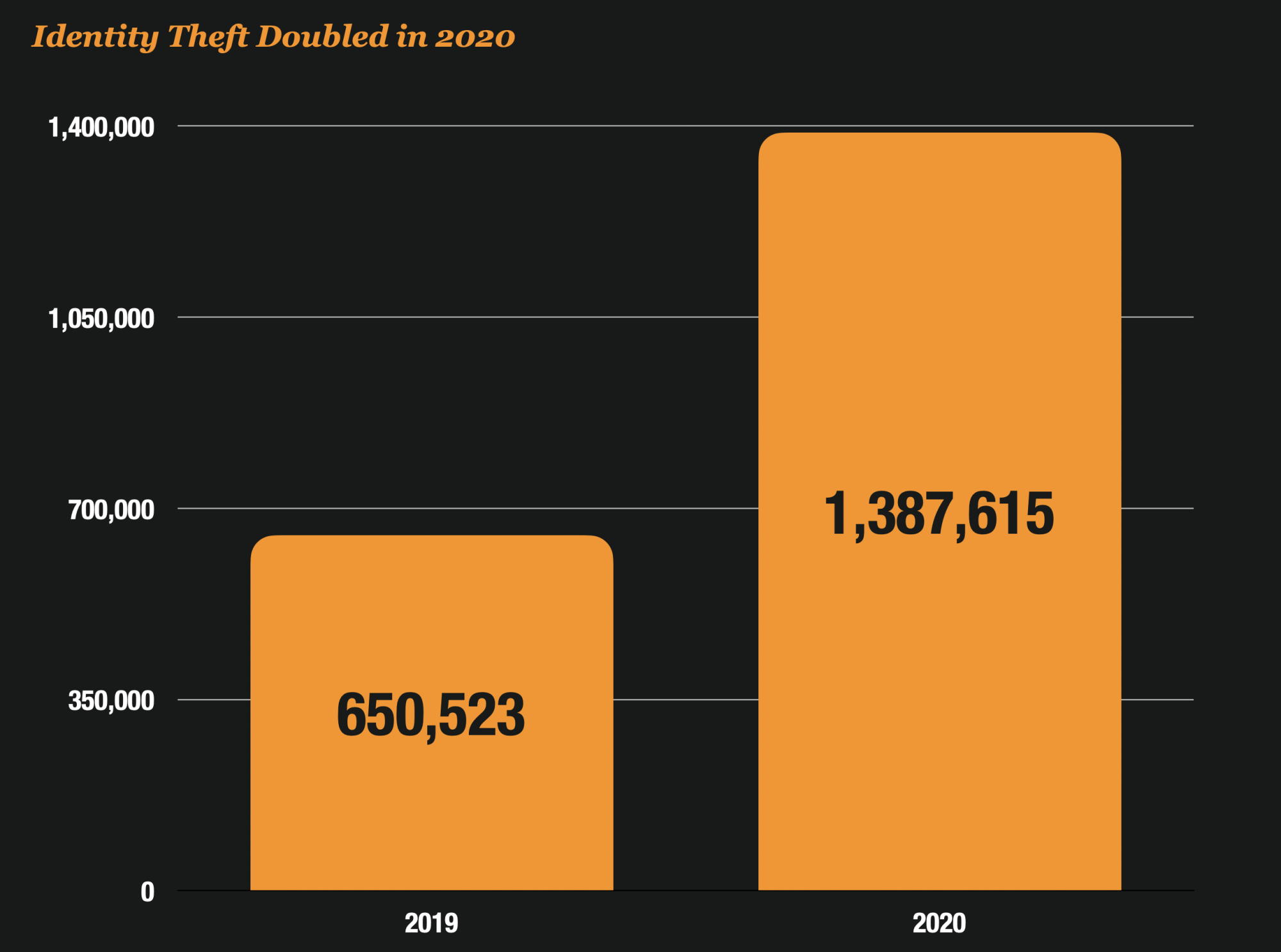 All told, twice the number of American’s were impacted by identity theft in 2020, than in 2019.