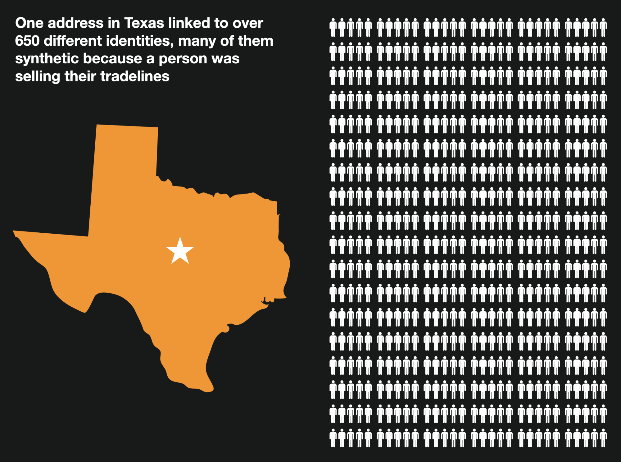 As an example, investigators recently linked over 650 identities to a single address in Texas. The person that lived at that address appears to have been selling their tradelines for years. Many of those identities were synthetic, and that person’s home has now been linked to the criminal element.