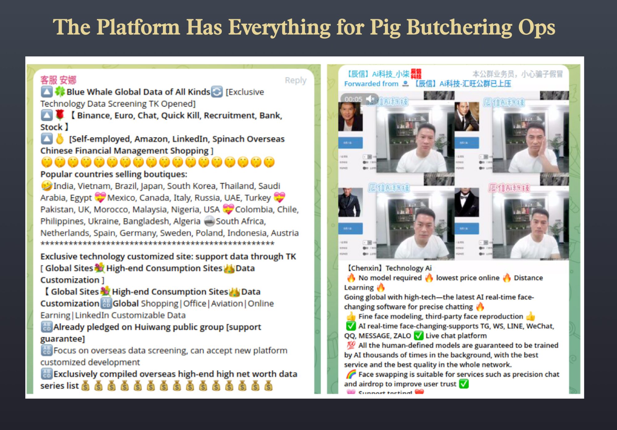 Imagine a market built for Pig Butchering scam operators, like a Walmart, where they could shop for everything they needed.