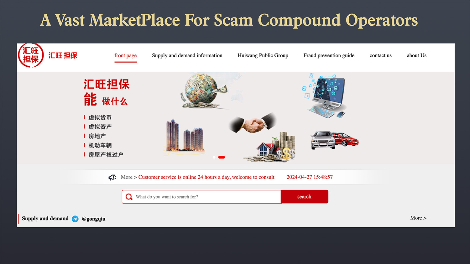 Despite claiming to be a neutral platform, most services are targeted at cyber scam operators who run Pig Butchering operations. The platform started in 2021 as a seemingly legitimate service for selling cars and real estate.