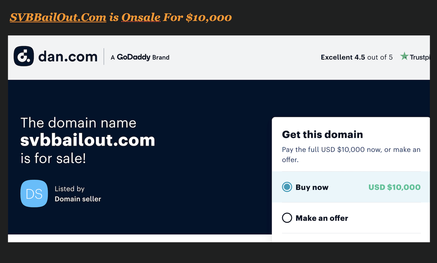 Other sites are just trying to make an honest buck, like these guys trying to sell svbbailout for $10,000