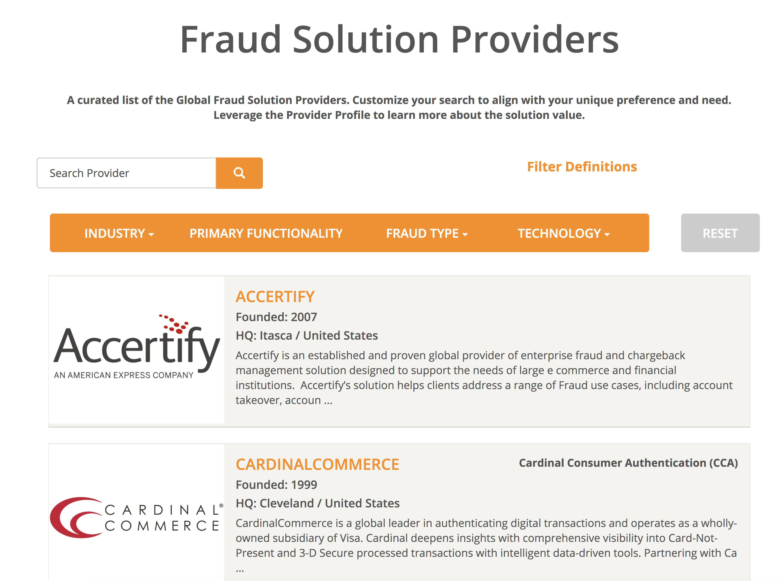 This is a great tool if you’re researching solutions, thinking about investing in fraud technology vendors or doing an RFP.