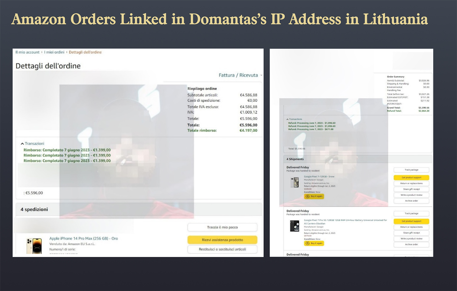 First, they were able to link an IP Address associated with him to fraudulent refunds posted as vouches on Telegram. The IP address was based in Lithuania.