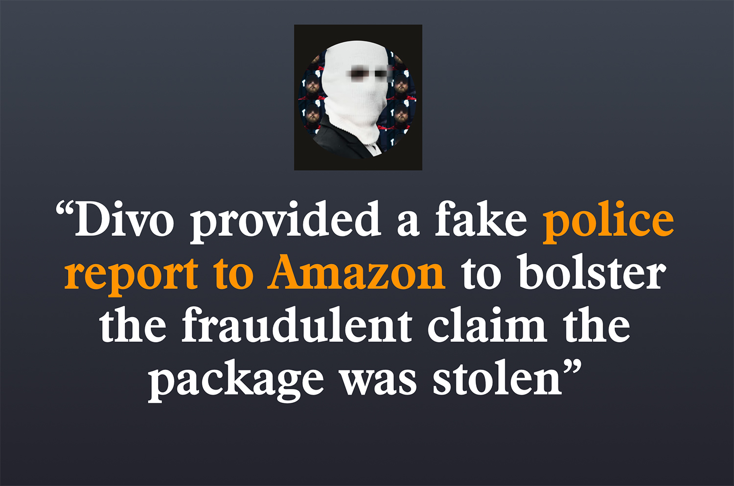 DIVO provided Amazon with a false police report. The investigator reviewed the account chat history between DIVO and Amazon and found all of the false statements indicating that he had not received the Apple Watch.