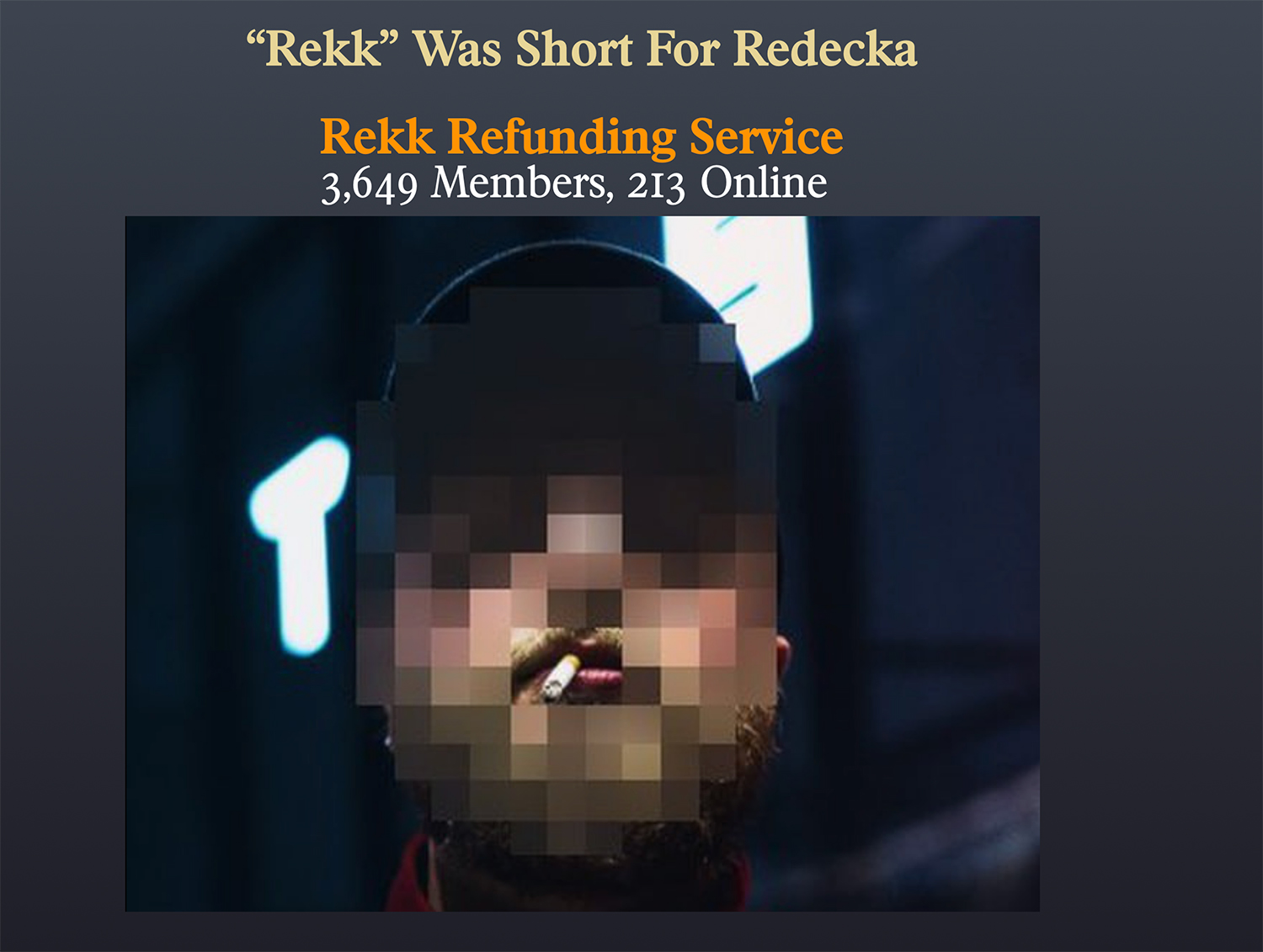 Interestingly, he used the moniker ” REKK” for his refund service, which closely matched his own name.