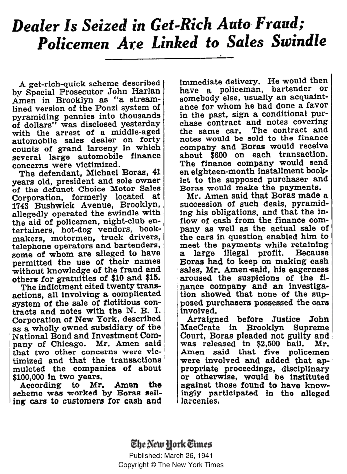 About a week ago, I decided to challenge myself and find the oldest case of auto lending fraud that I could find. So I decided to research the archives of the New York Times.  I went back and searched articles from 1870 until I finally found the first case of Auto Fraud that they ever reported on.