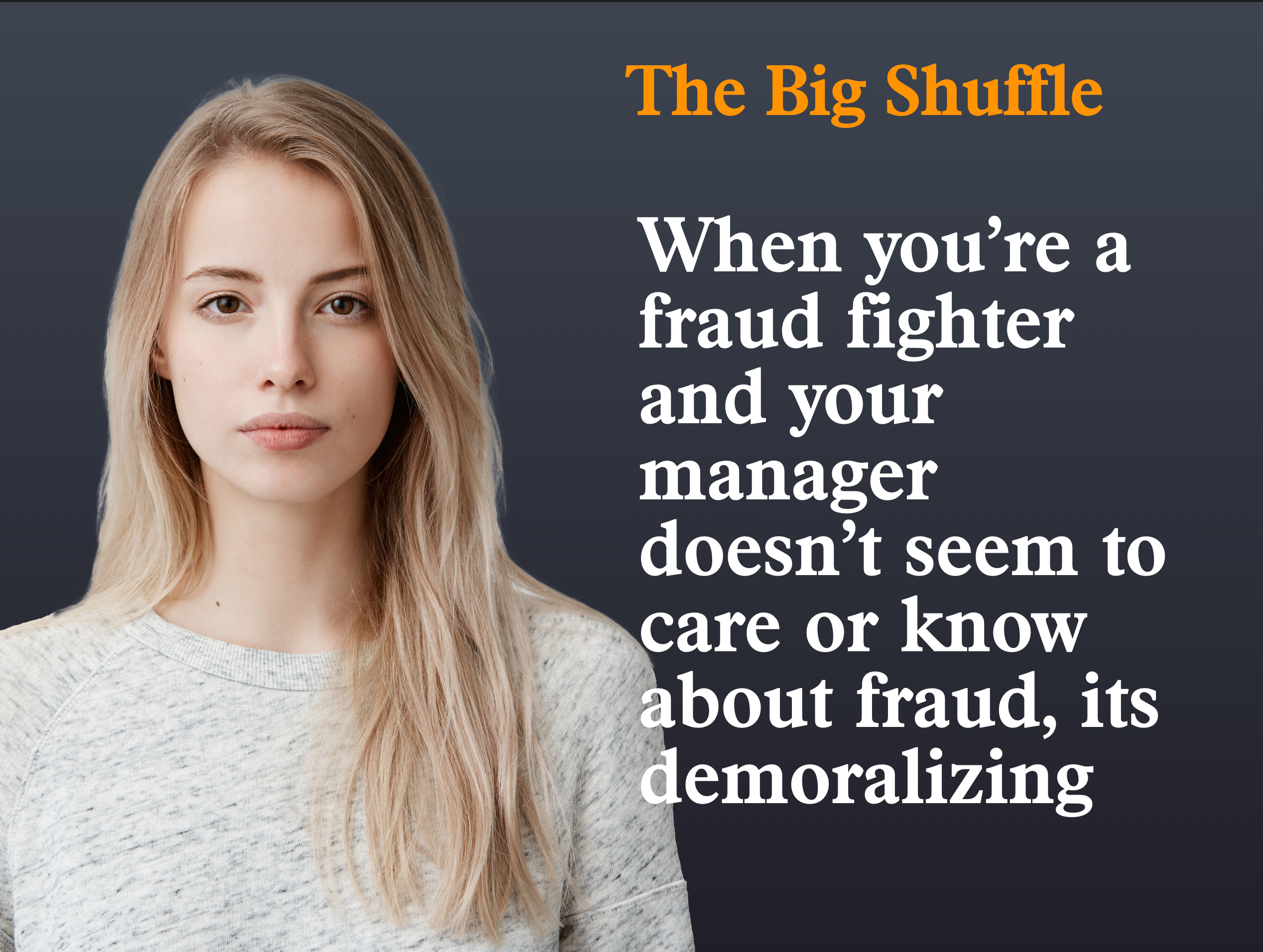 She loves her job. She loves fighting fraud. But she has a nagging feeling in the back of her mind. “Does this company take fraud seriously?”