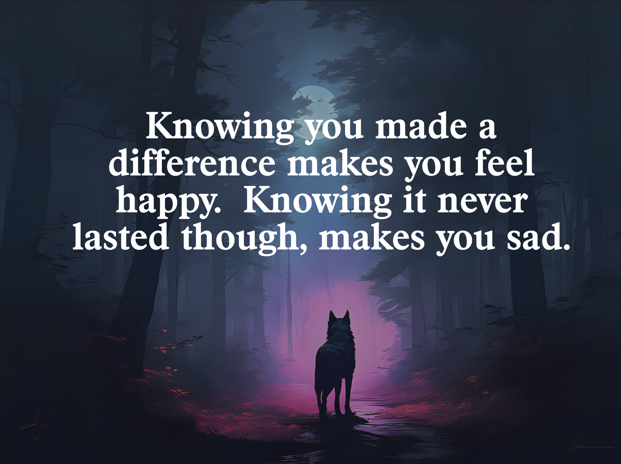 Knowing that makes you feel a little good, know you counted. But it also makes you a little sad, knowing it never had a lasting impact.