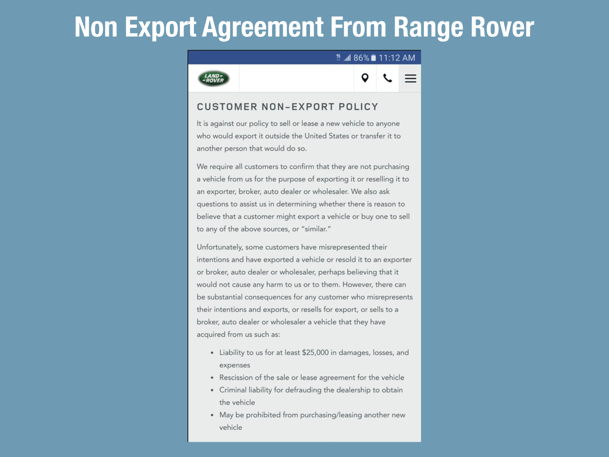 In the case of Travis, he got contacted by one of the Porsche dealerships after they were alerted to the fact he was an exporter. They demanded that he return the car without any miles on it or be forced to pay the $8,500 penalty that was outlined in the contract.