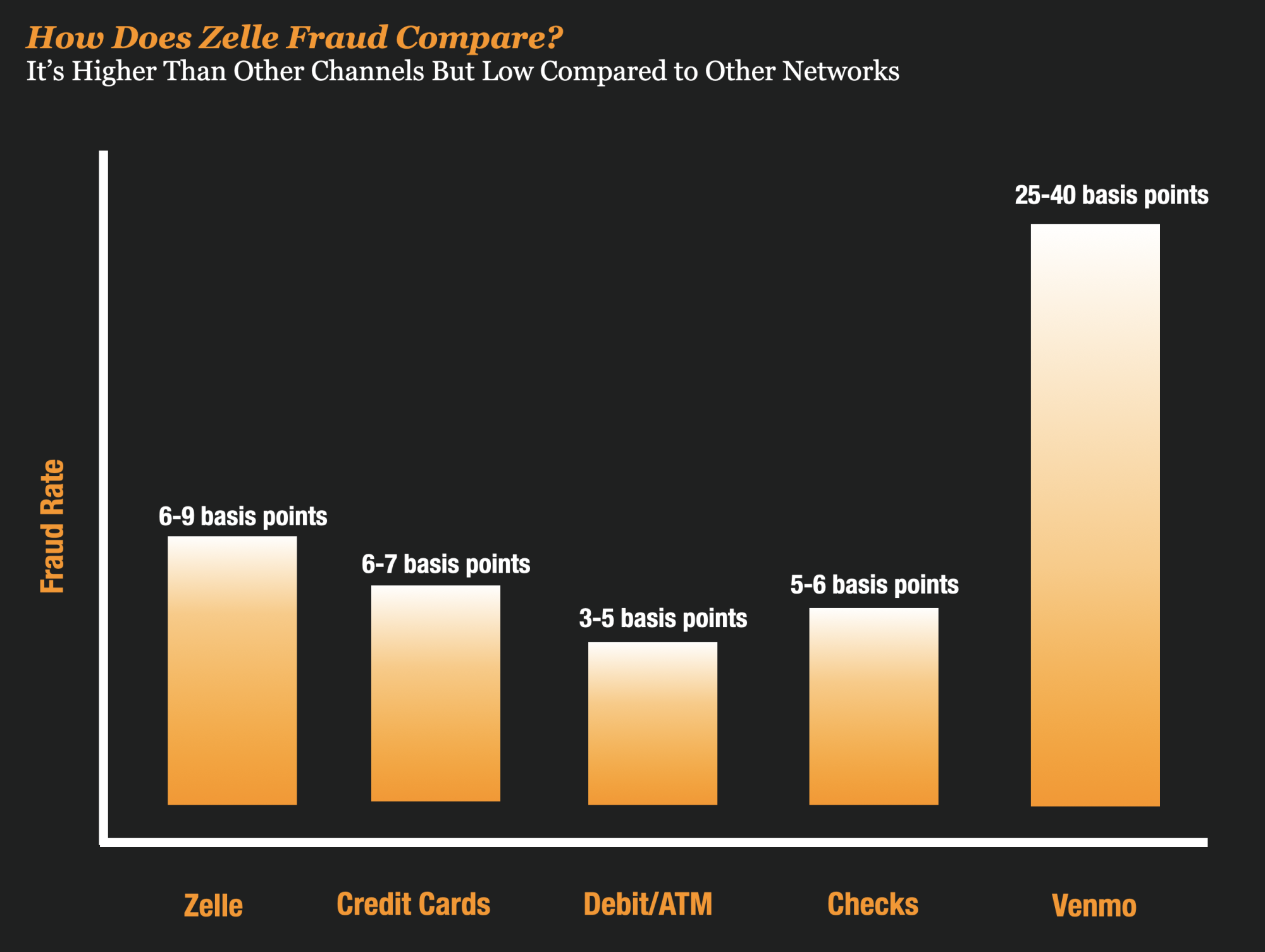 In fact, when comparing the Zelle fraud rates to other channels within a typical bank it could be considered high.