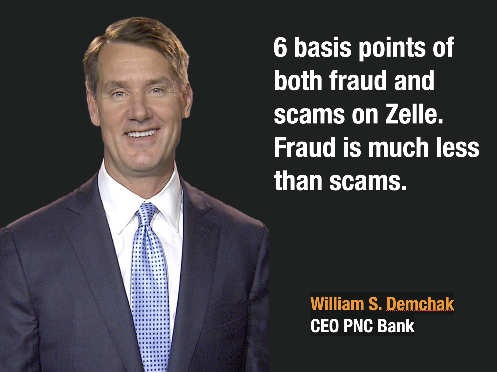 William S. Demchak, CEO of PNC bank, reported that total fraud and scam disputes at the bank run only 6 basis points. He also mentioned that fraud is much lower than scams.