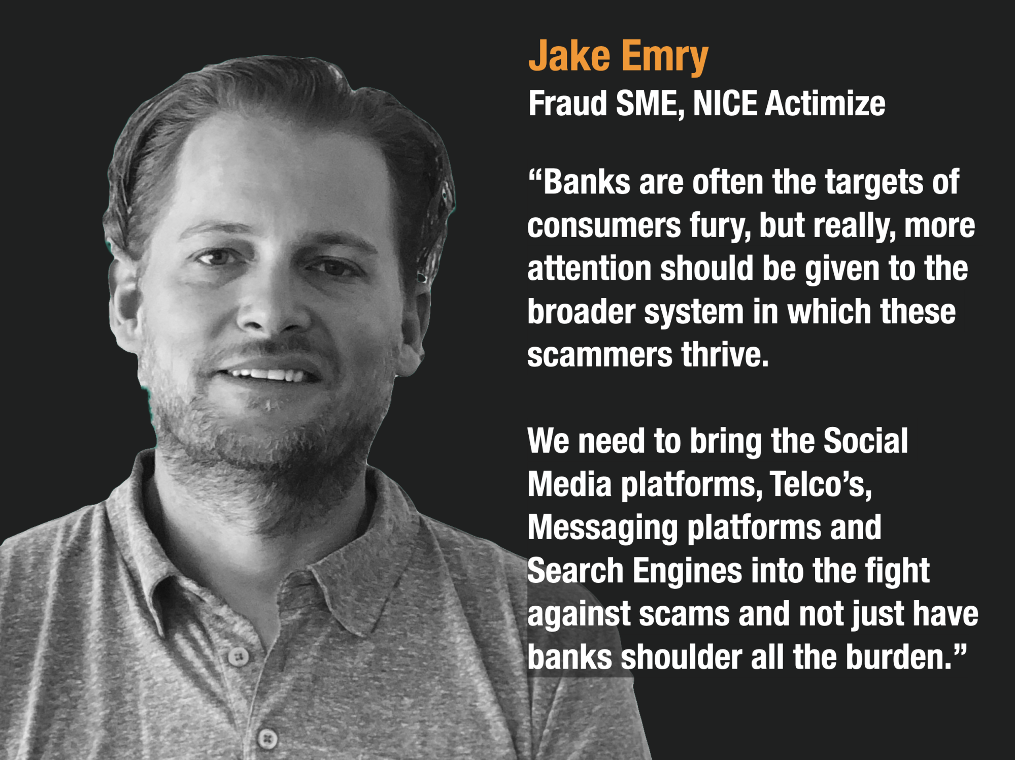 “The whole system needs to be scrutinized, not just Zelle, says Jake Emry, “Banks are often the targets of consumers’ fury, but really, more attention should be given to the broader system in which these scammers thrive. We need to bring the Social Media platforms, Telco, Messaging platforms, and Search Engines into the fight against scams and not just have banks shoulder all the burden”.