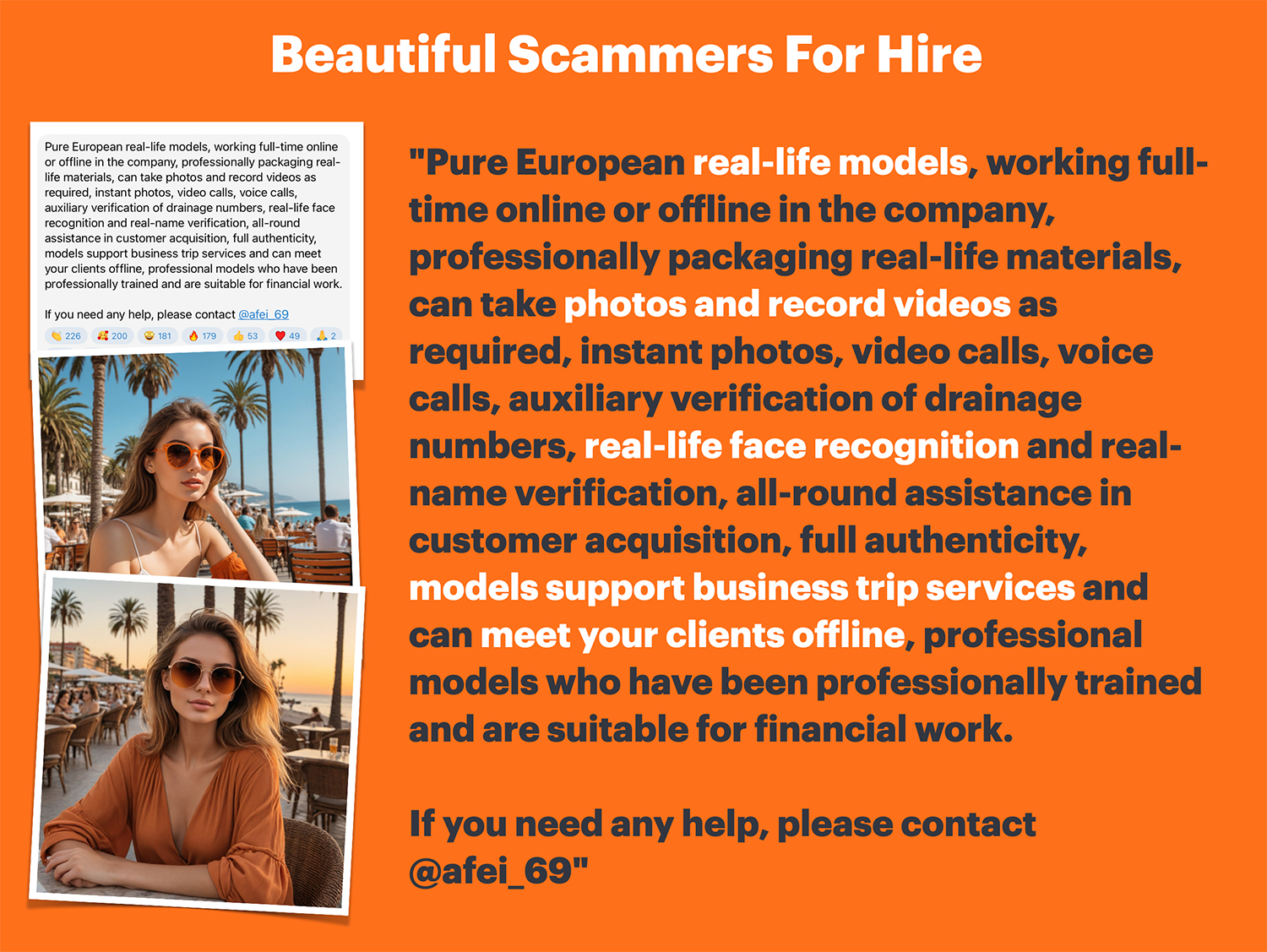 Beautiful Scammers For Hire. Will Travel Too