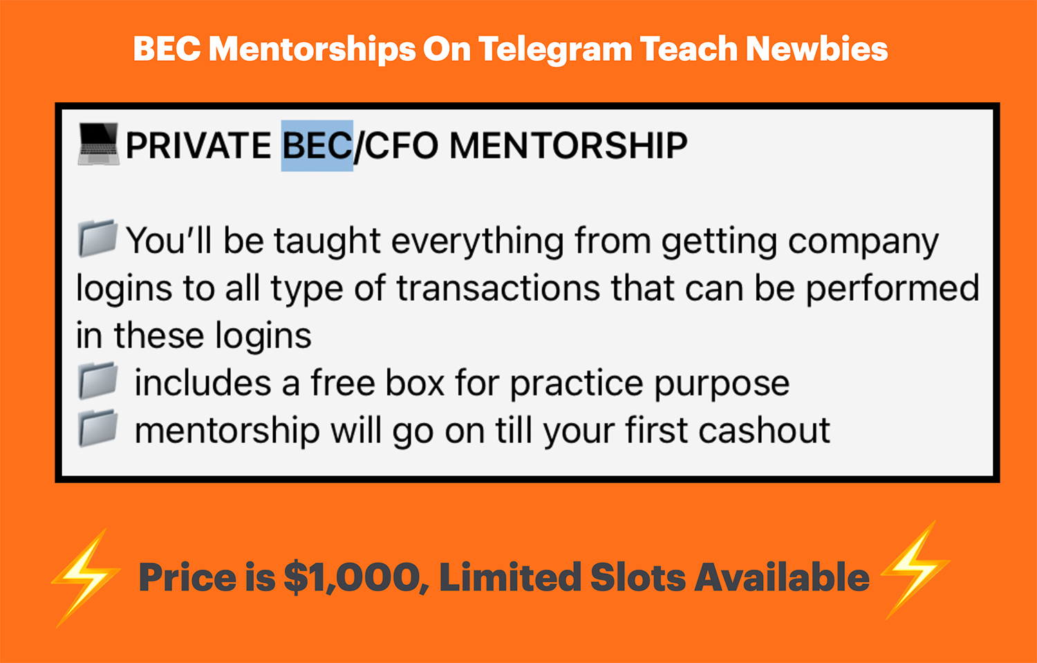 The BEC Mentorship channel shows the lengths these scammers will go to make money from unsuspecting companies.