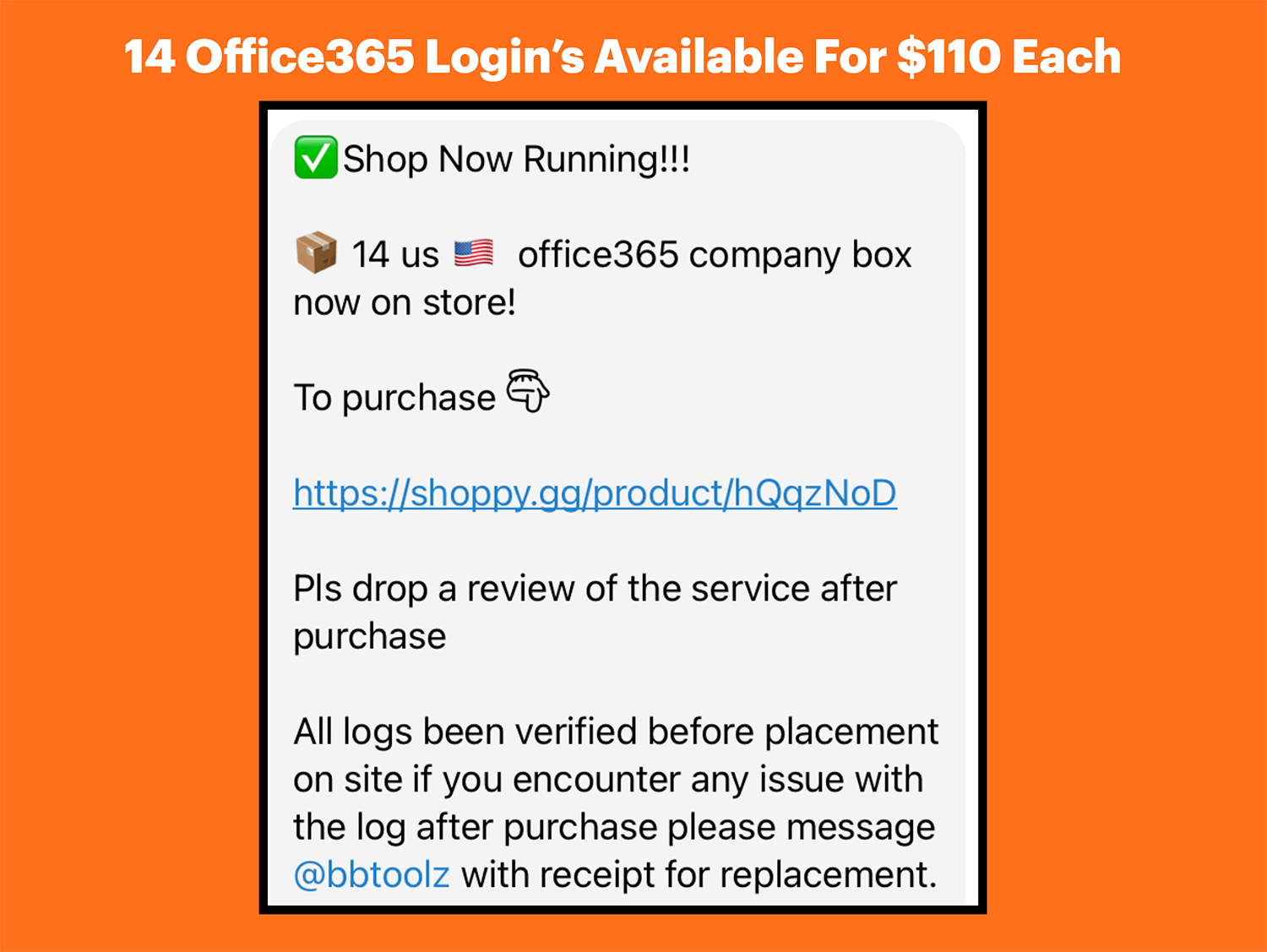 Selling Stolen Microsoft Office 365 Credentials To Carry Out The Fraud