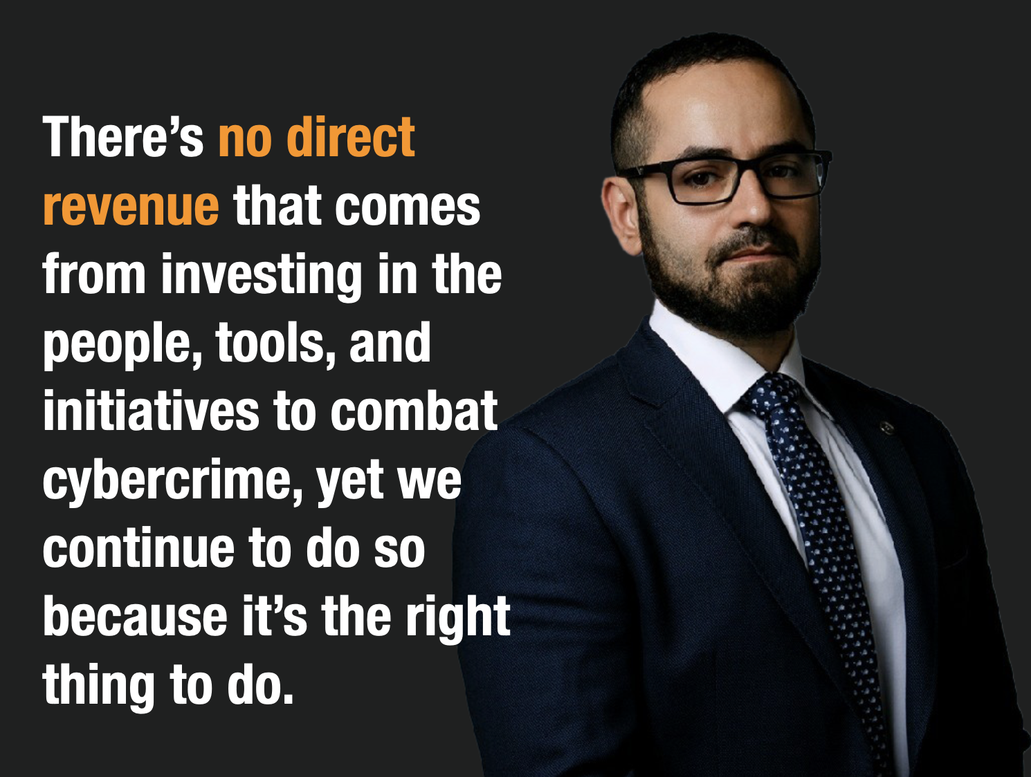 There’s no direct revenue that comes from investing in the people, tools, and initiatives to combat cybercrime, yet we continue to do so because it’s the right thing to do.