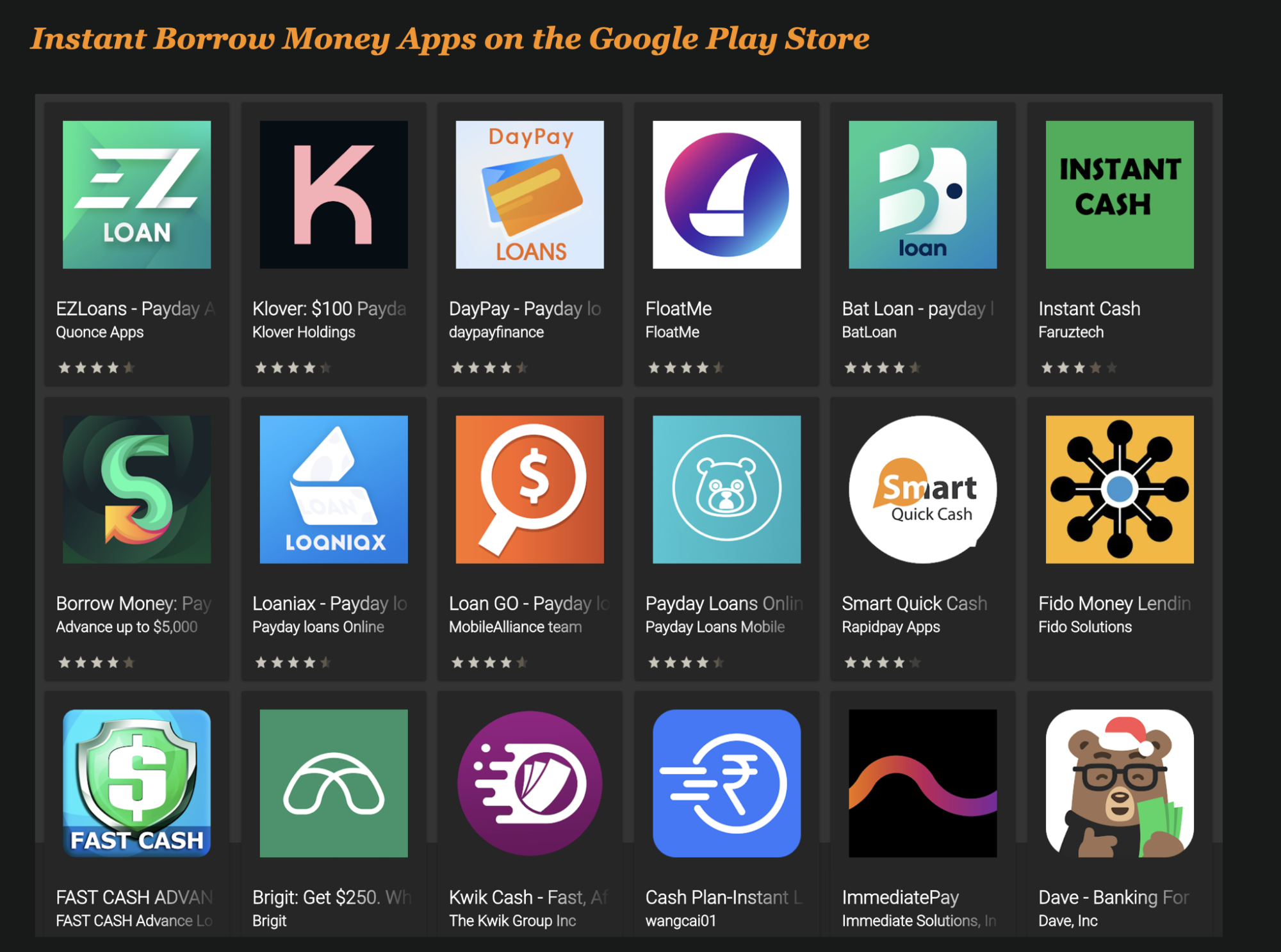 These apps include OkCash, Go Cash, Flip Cash, ECash, and SnapIt Loan.