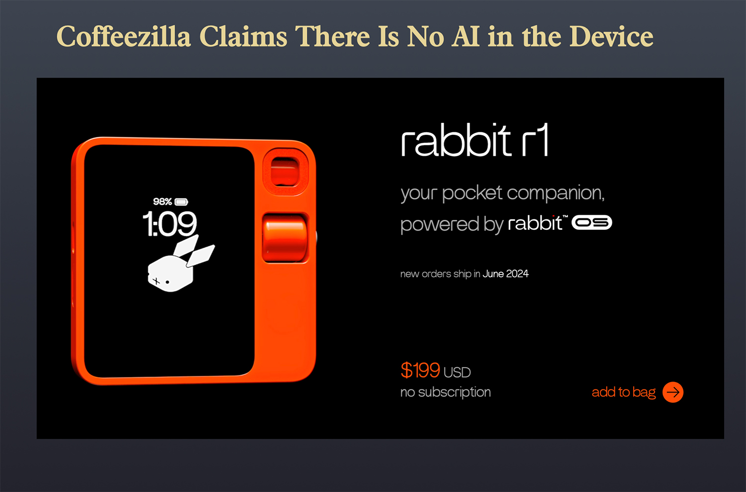 And now, he is on to a doozy – Rabbit. He claims the AI embedded within the Lamb device doesn’t work as advertised. In fact, he determined that “Lamb” is nothing more than ChatGPT with some hardcoded scripts.