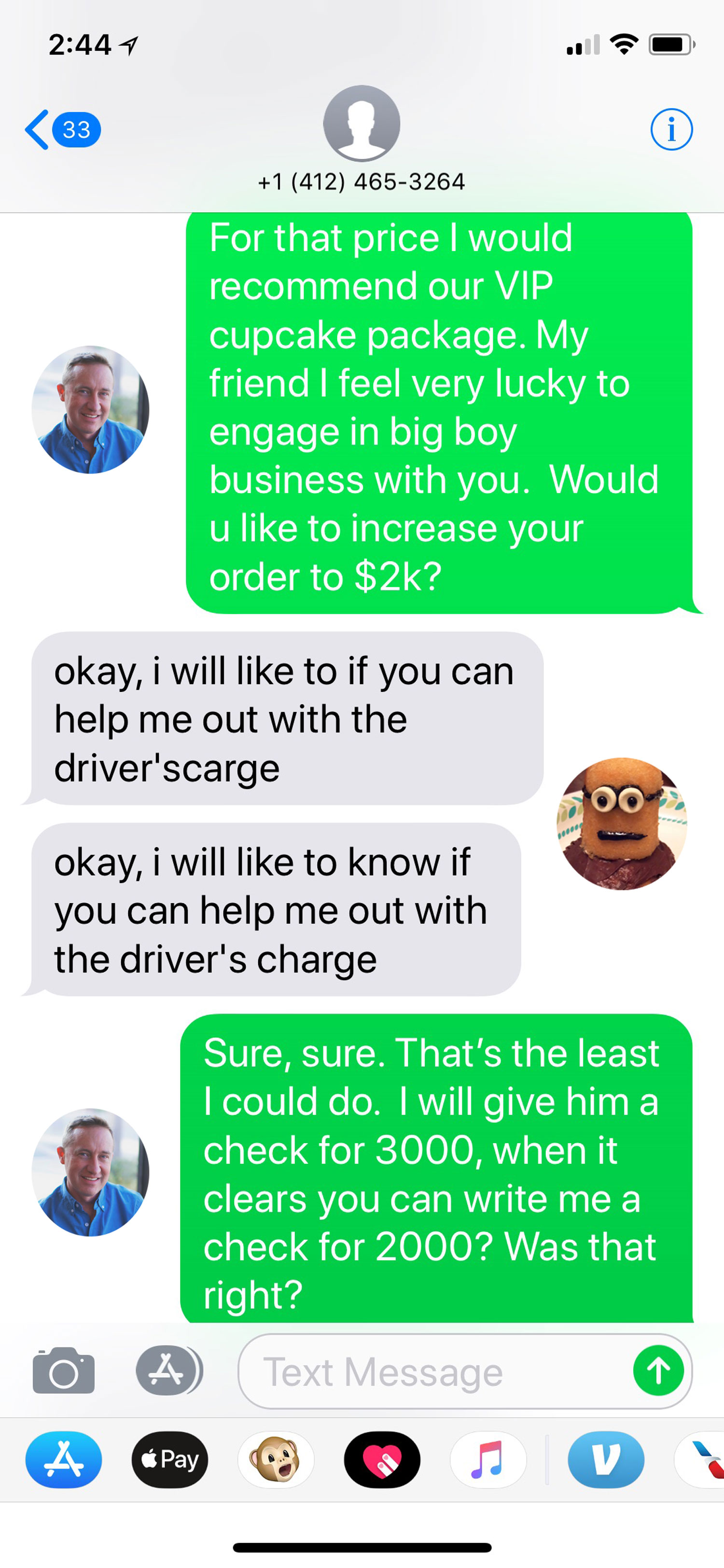 Be careful out there folks.  The cupcake fraudster is still on the loose, just waiting to send you a bad check for you to deposit!