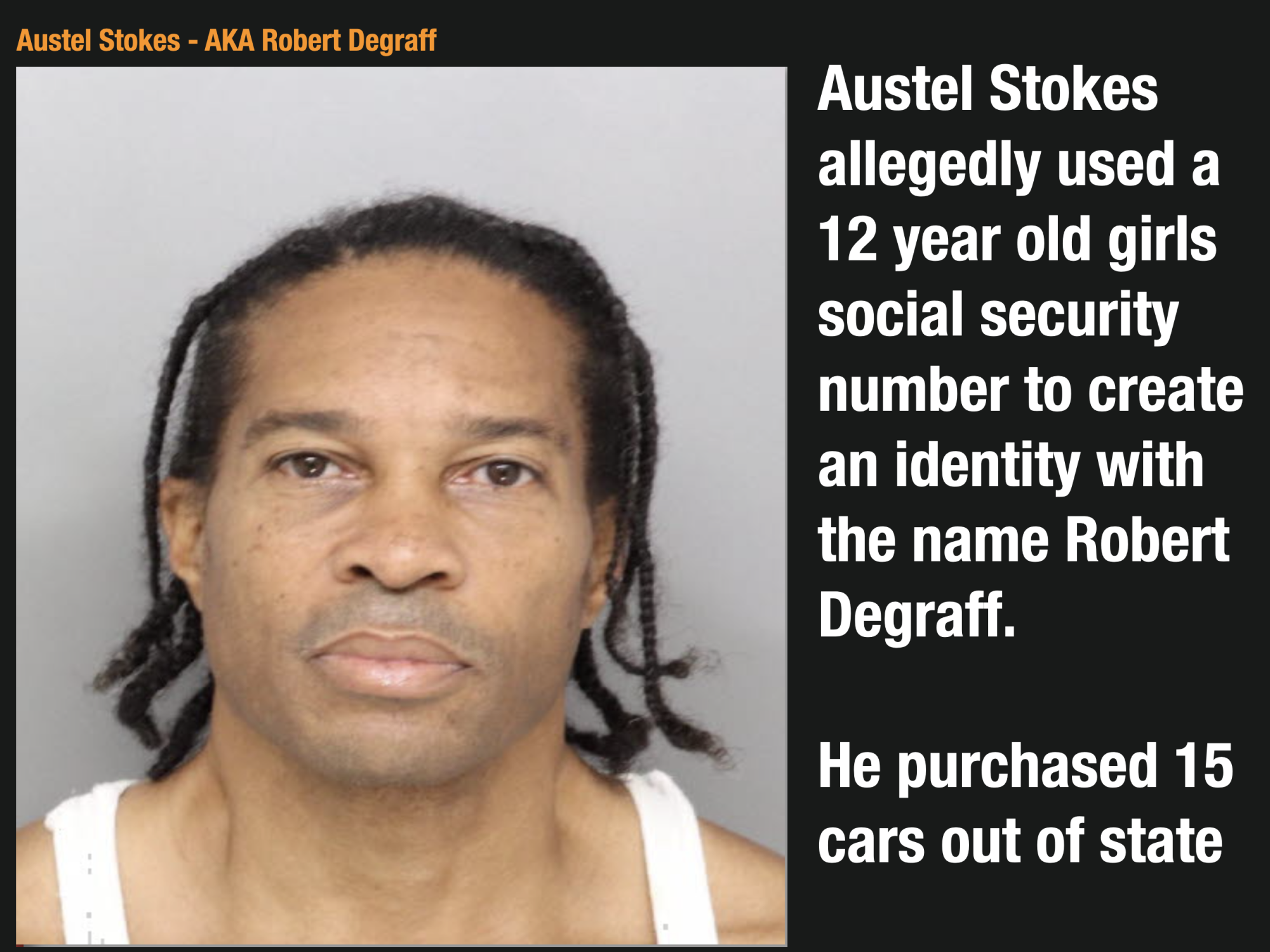 Austel Stokes, the alleged ringleader of the fraud ring, used the fake name Robert Degraff and used the girl’s social security number to create a brand new identity.
