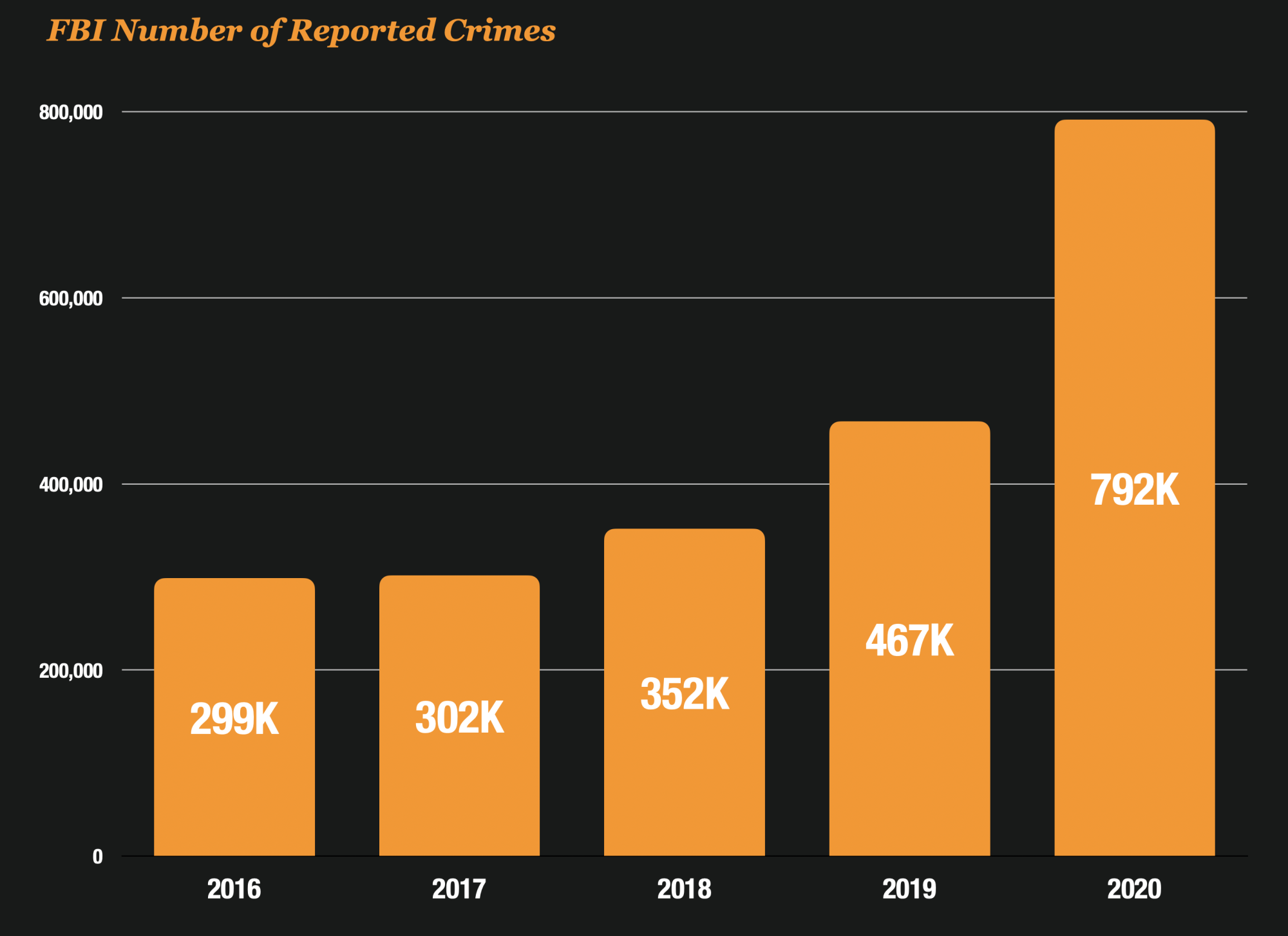 The FBI Released their annual report on fraud, and as we all expected the numbers showed a surge in reported fraud and scams for 2020. The FBI received a record number of complaints from the American public in 2020: 791,790, with reported losses exceeding $4.1 billion. That’s a 69% increase over 2019, and a doubling of reported fraud since 2018.