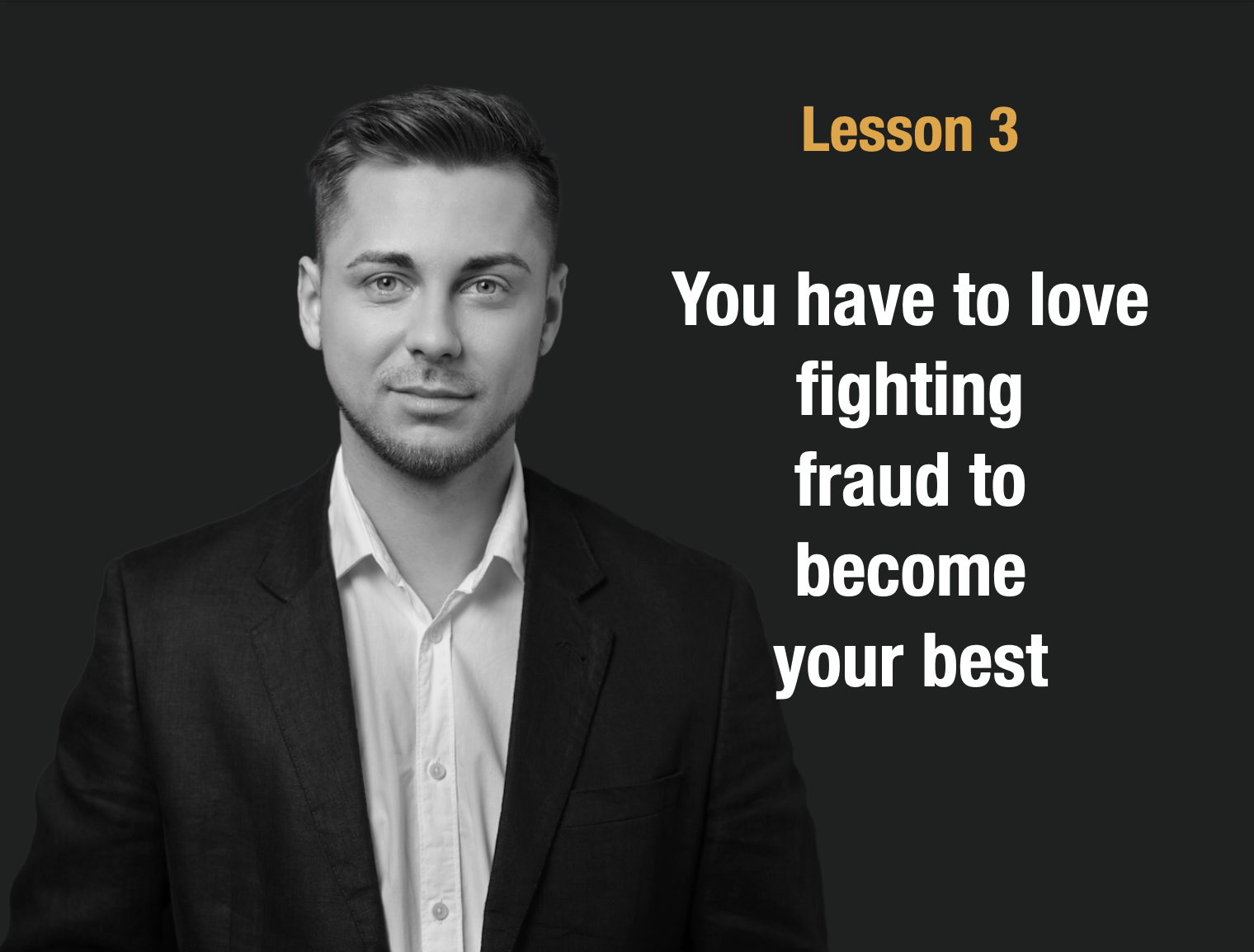 And finally, love what you do. If you love fighting fraud and if you love helping people, you will be the best in the world at it.