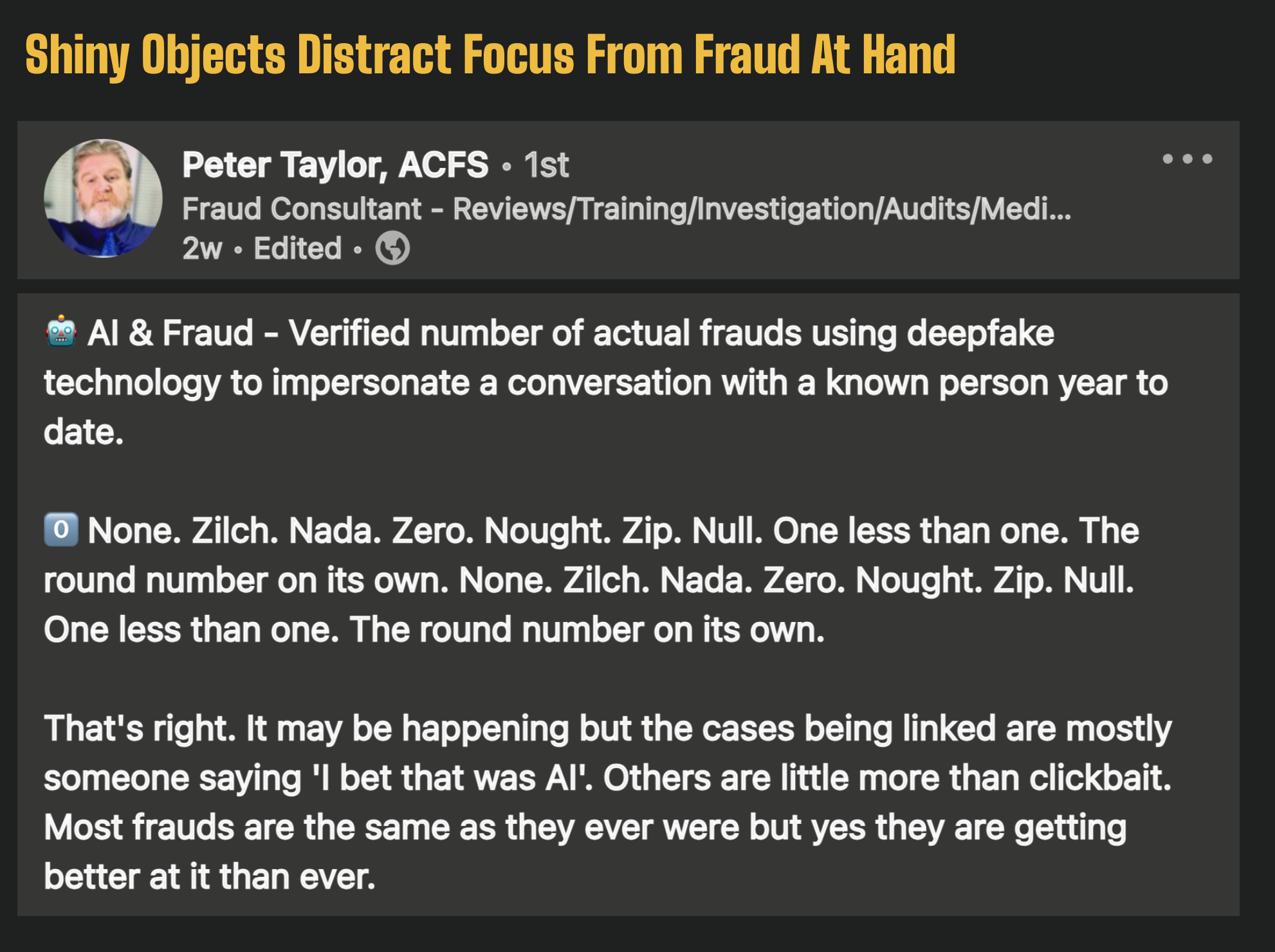 Be Aware of AI, But Don’t Lose Focus Of What The Fraud At Hand Is