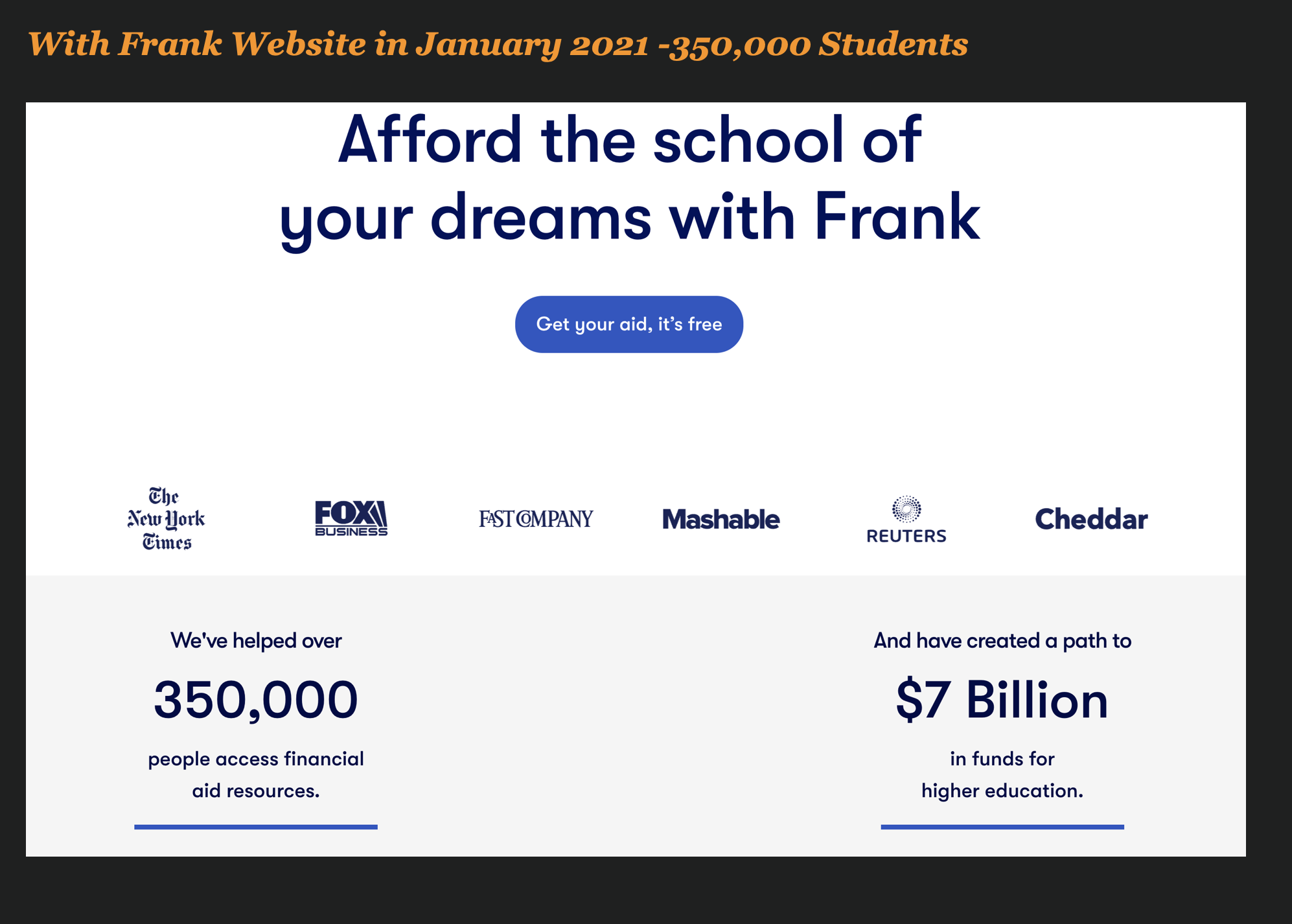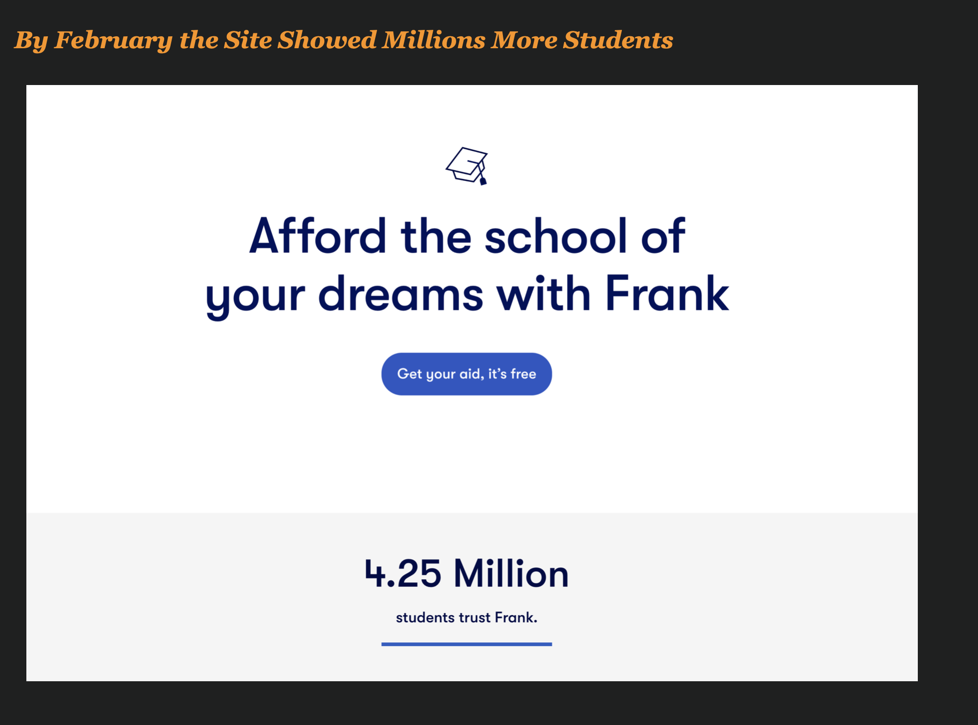 And this the Frank website less than 30 days later. The number now shows 4.25 million students.