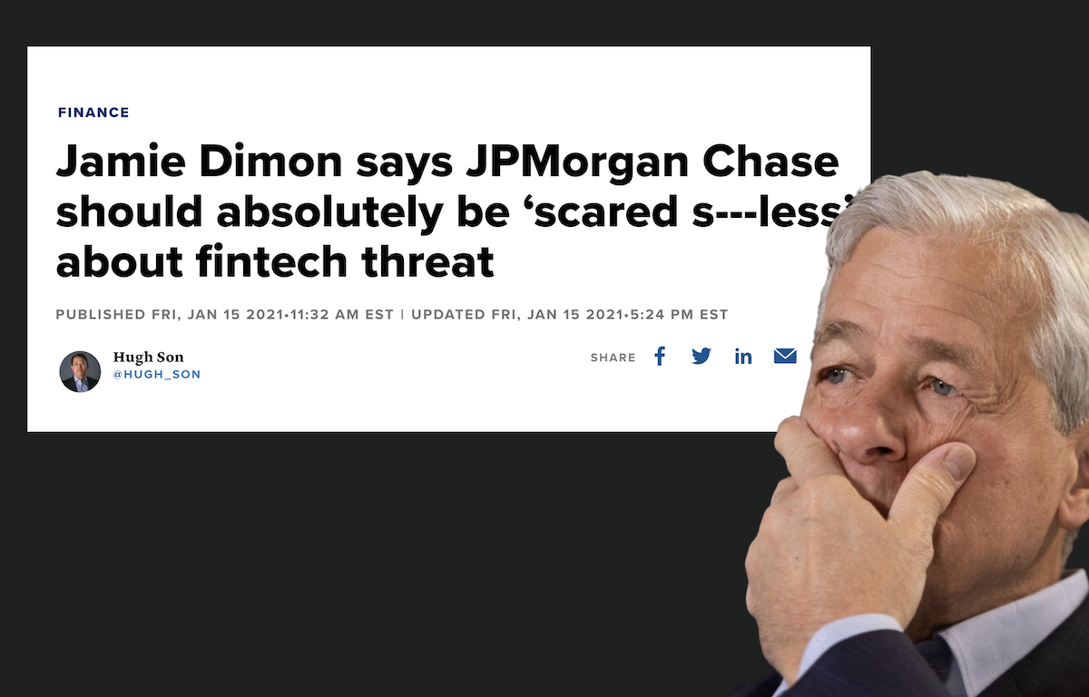 Maybe she read the headlines that Chase was “scared shitless” about fintechs and she found an easy mark because they were motivated to capture startups in the lucrative student market.