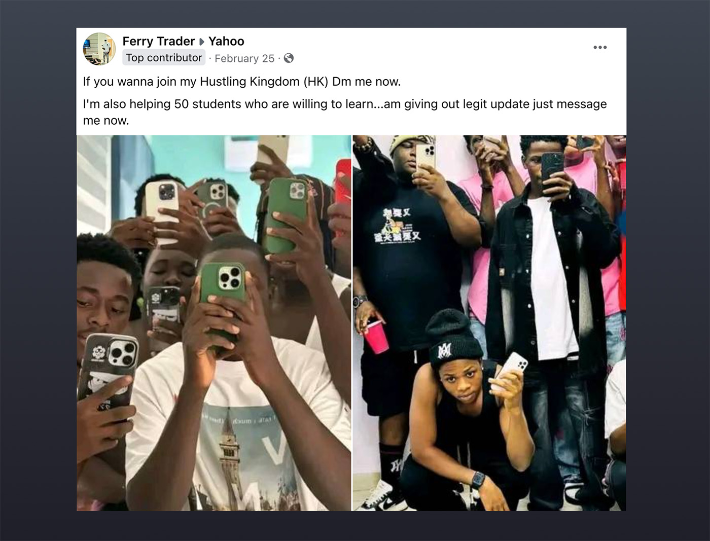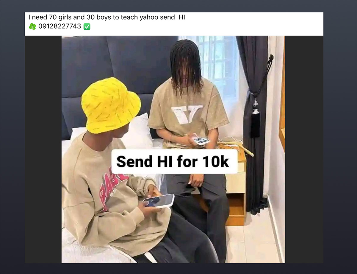 For Yahoo Boys, it comes down to making money. And they don’t really fool around with anything that doesn’t work – just sticking to the basics.