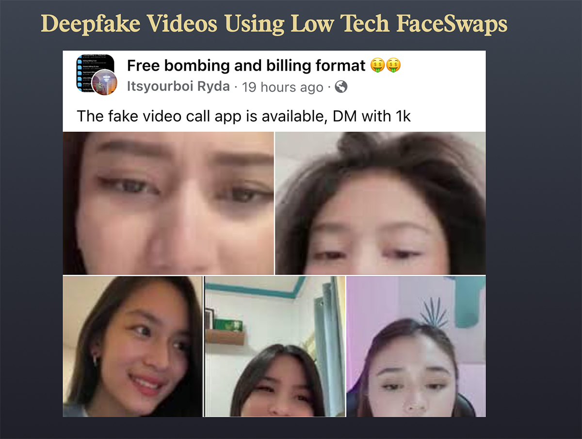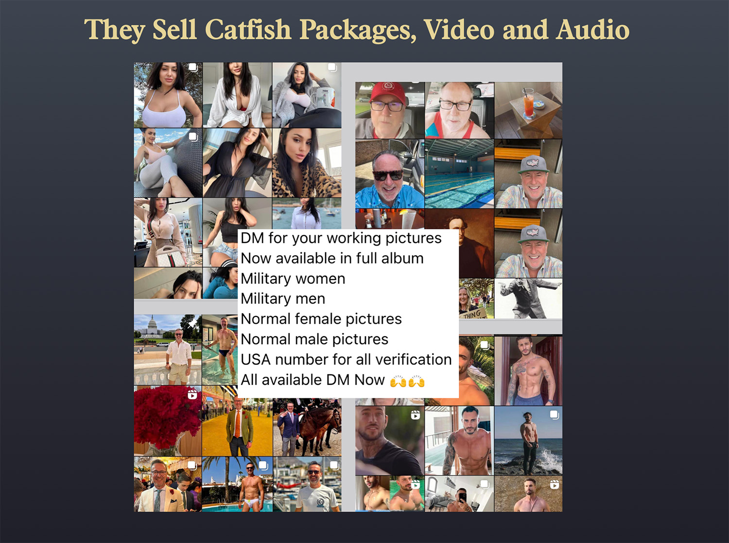 No need to try to create your own Catfish, Yahoo Boy’s sell complete packages of stolen images, and deepfake audio and video that can be used to fool victims.