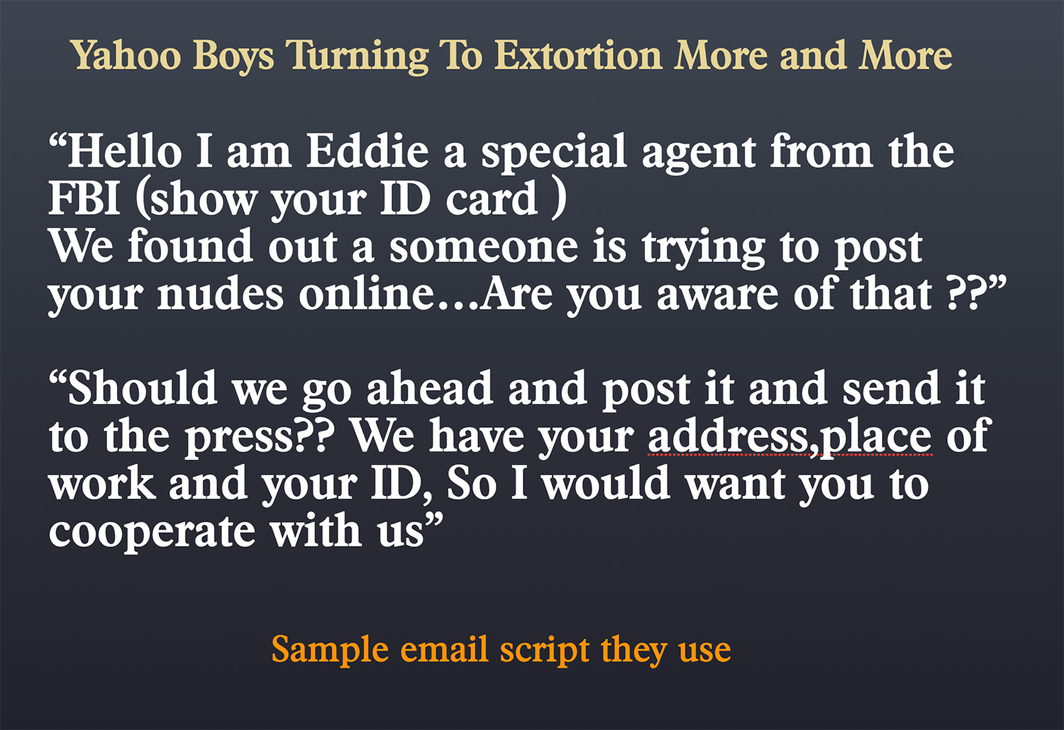 At Yahoo University, these are words to live by. These are how Yahoo Boys make money.