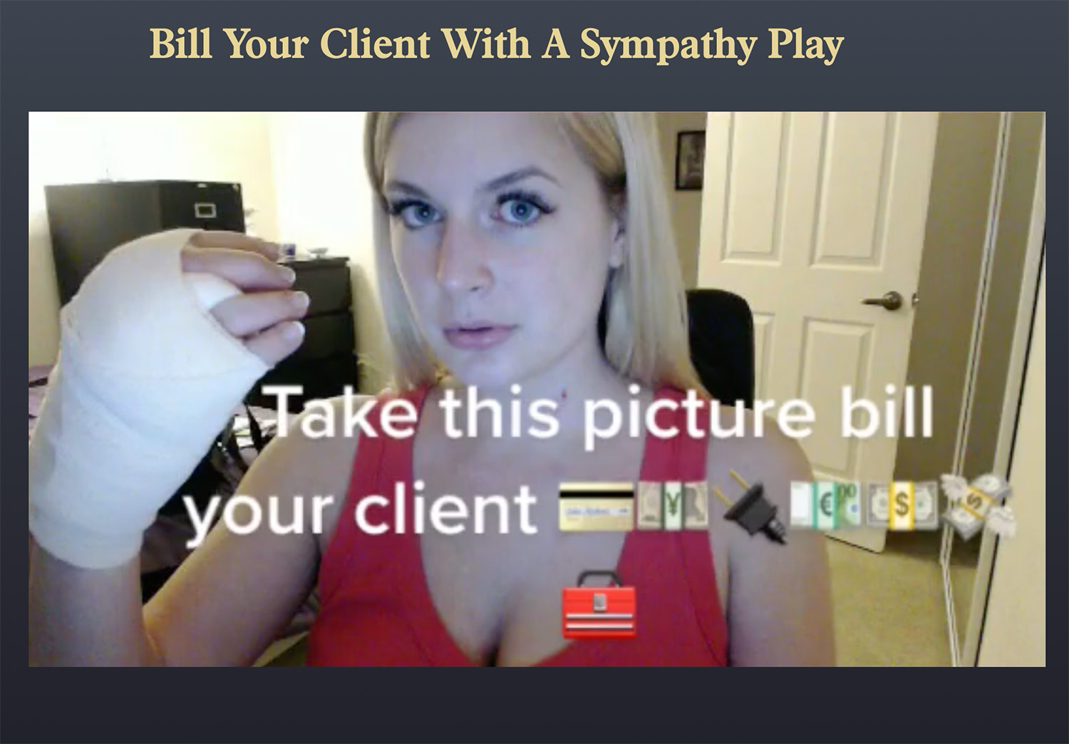 Billing refers to getting your clients to send you gift cards, Cash Apps, wire transfers. Whatever it takes, just get the money.