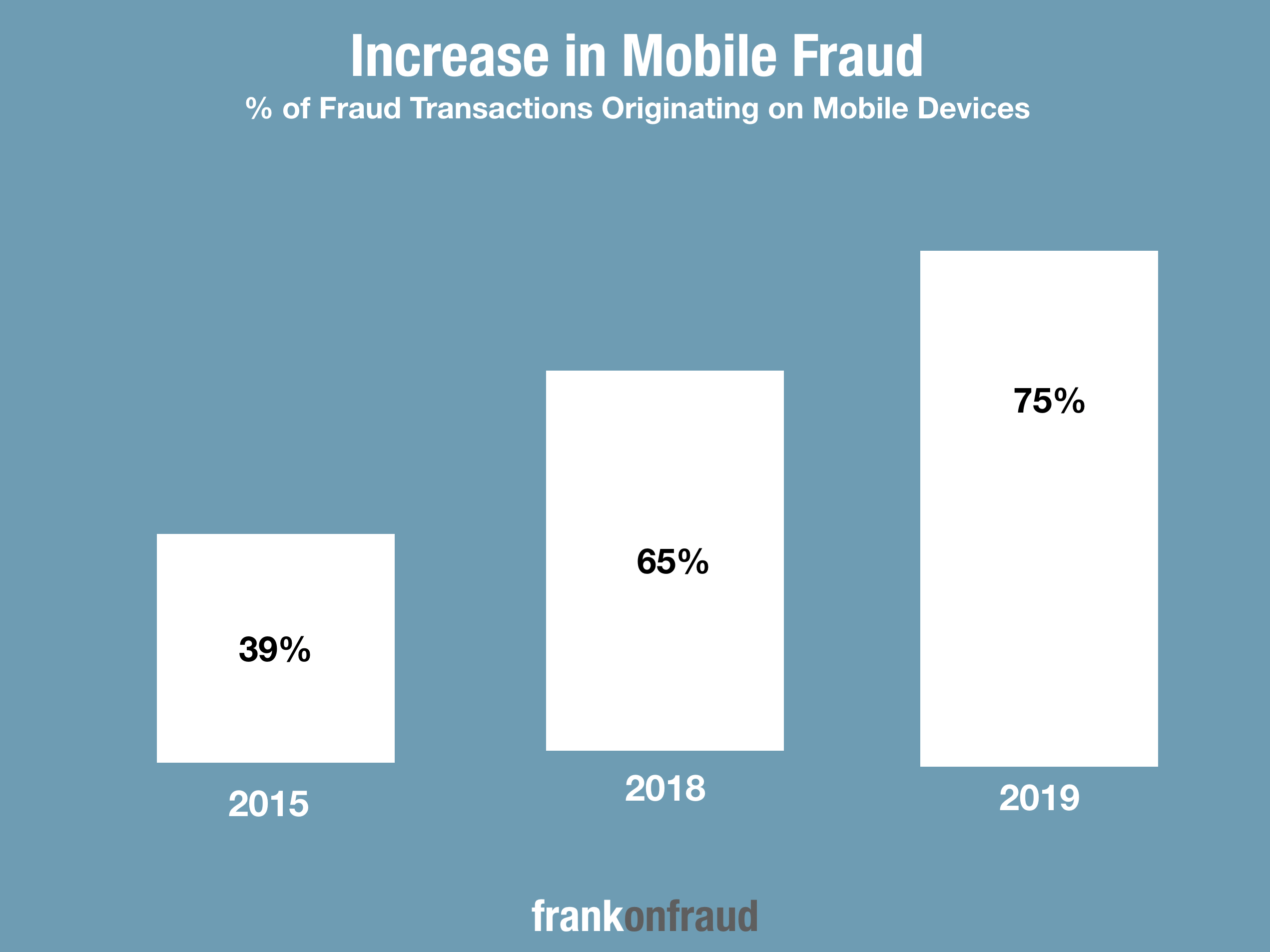 In 2019, mobile fraud will continue its record-breaking growth and could increase to 75% of all fraud transactions.