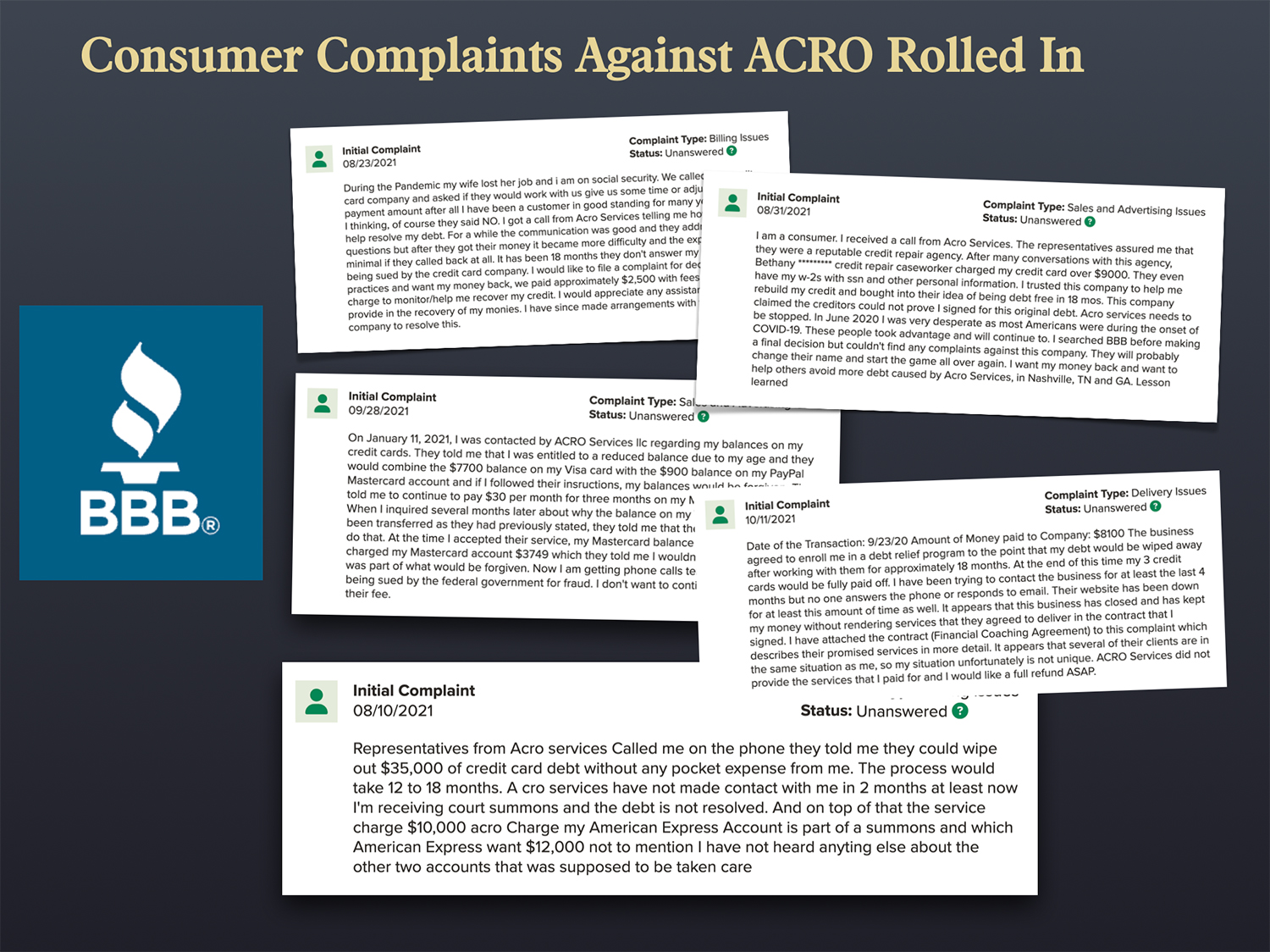 In an email from April 2021, the Director reported to the executives that ACRO Services was making illegal, deceptive calls to consumers, charging consumers’ cards without authorization, and that a bank investigator had visited ACRO’s headquarters due to so many of the bank’s customers being defrauded.