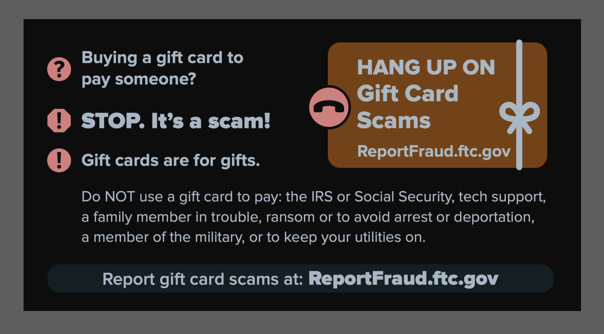 This same warning is appearing at tens and thousands of grocery stores, Walmarts, Targets, and home improvement stores across the nation and it’s the FTC’s counterattack on what they see as one of the most significant threats to US Consumers – Gift Card Fraud.