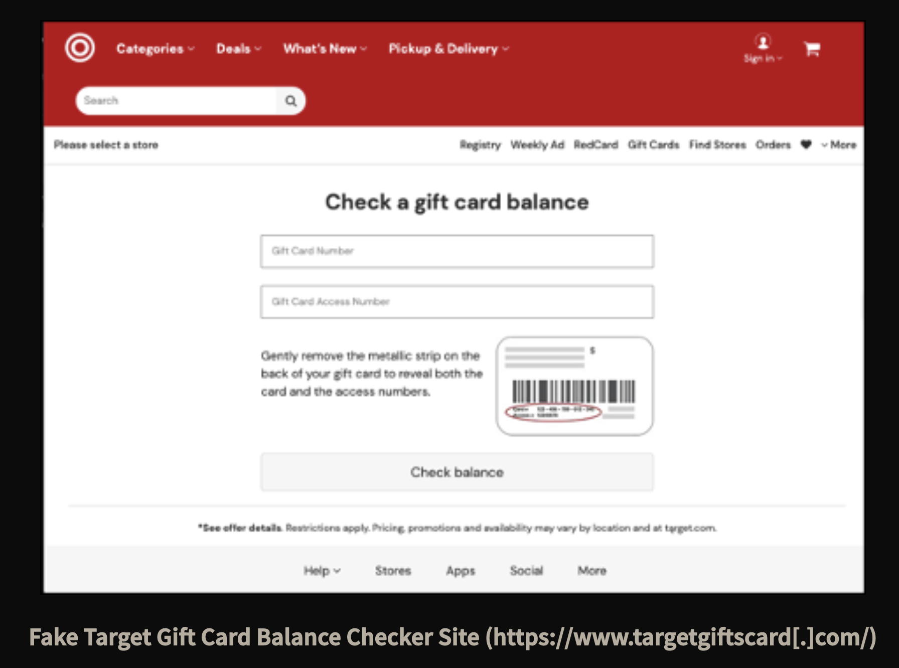 These sites used the retailers branding and believable URL’s such as applegiftcardbalance.com