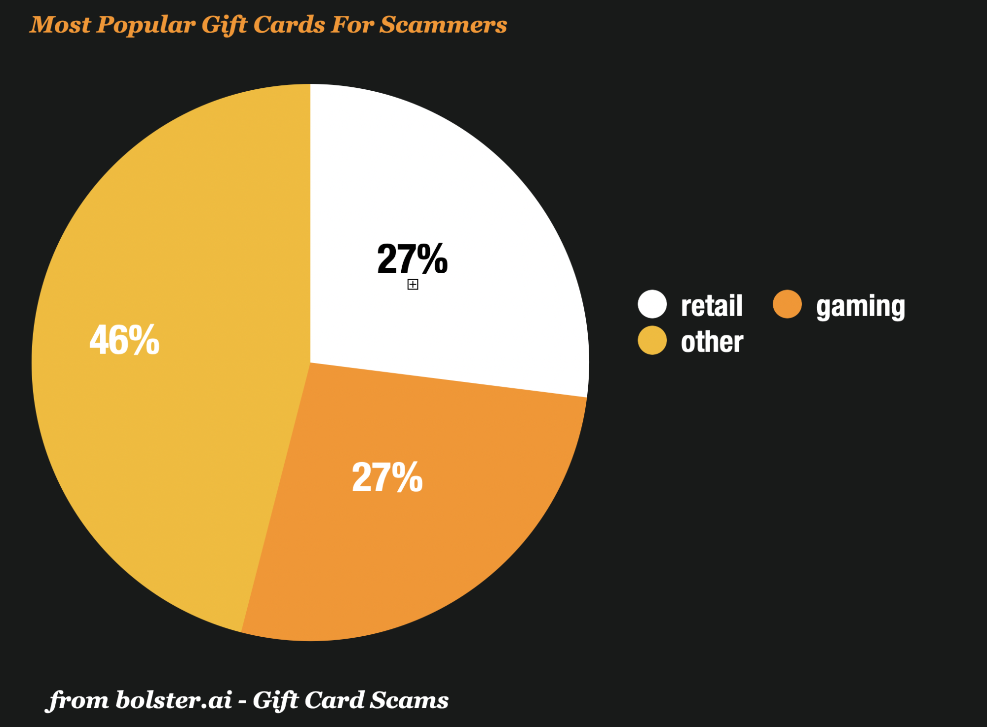 According to Bolster.ai, a fraud prevention company that tracks gift card scams across industries, the hottest gift cards for scammers are retail and gaming gift cards.
