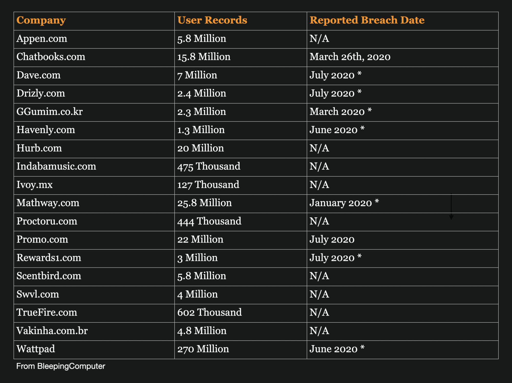 BleepingComputer reports that a hacker going by the name ShinyHunters has begun leaking the breached databases for free on a hacker forum known for selling and sharing stolen data. The data contains user names, emails and passwords for online sites.