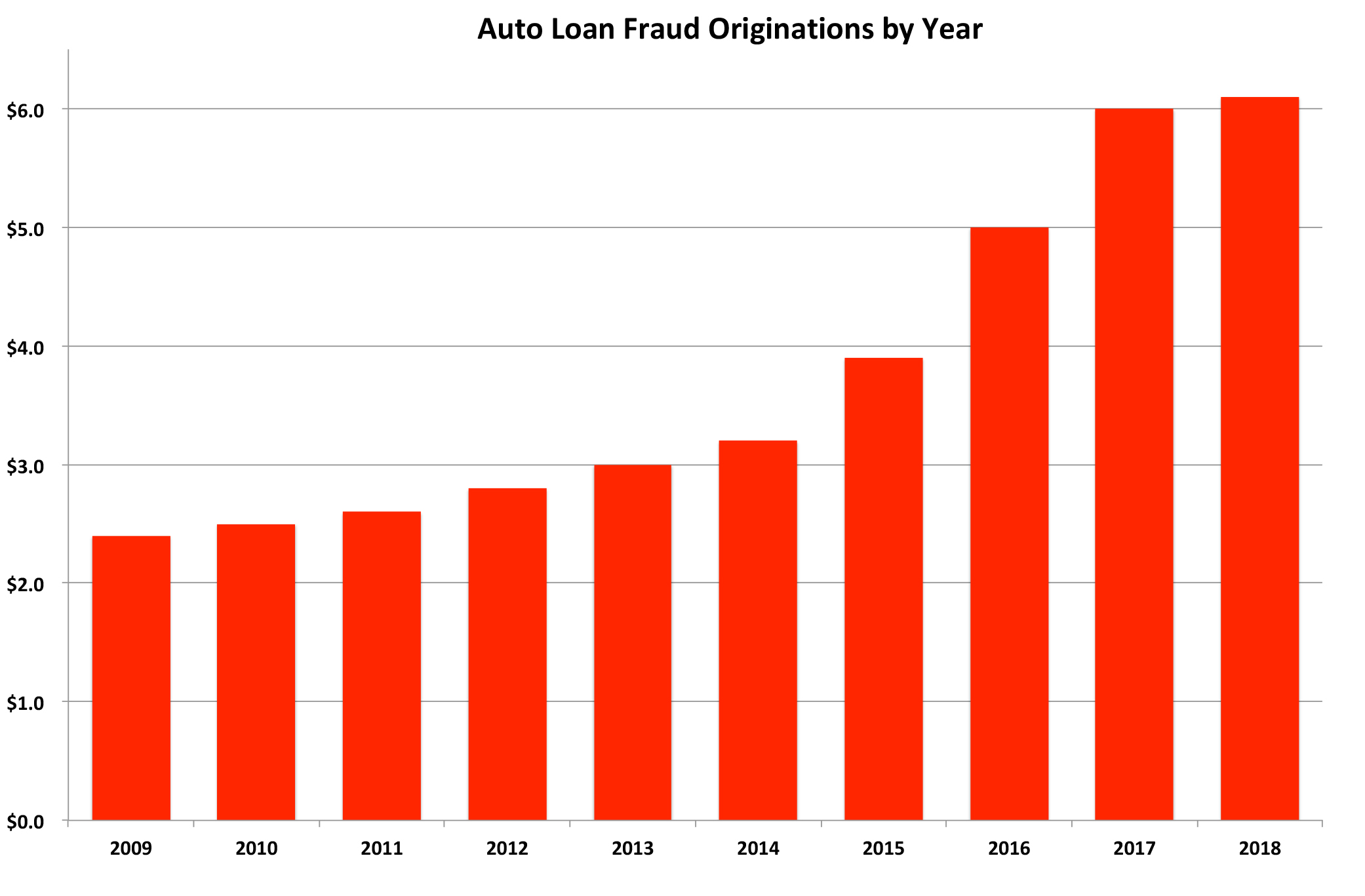 Auto lending fraud loss estimates have been climbing every year since 2009. As car thefts have declined, crooks have simply found an easier way to get the keys to cars.