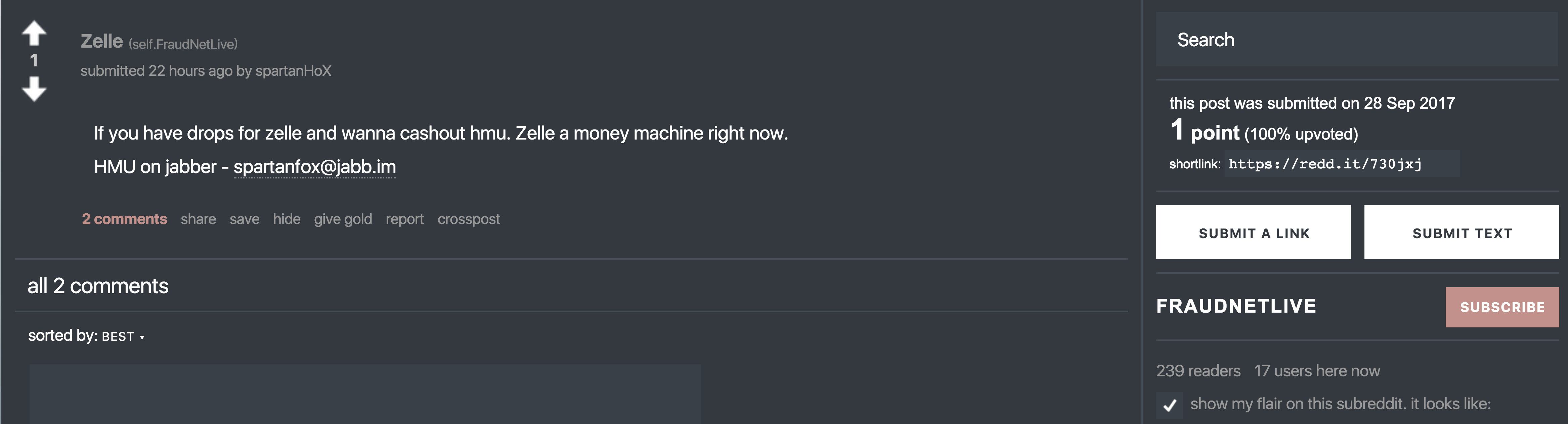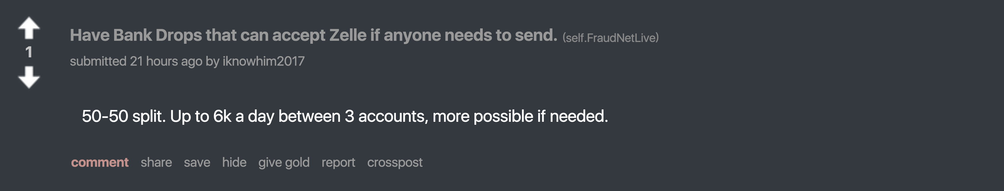 In the last 24 hours, multiple messages have appeared where fraudsters are communicating about Zelle.