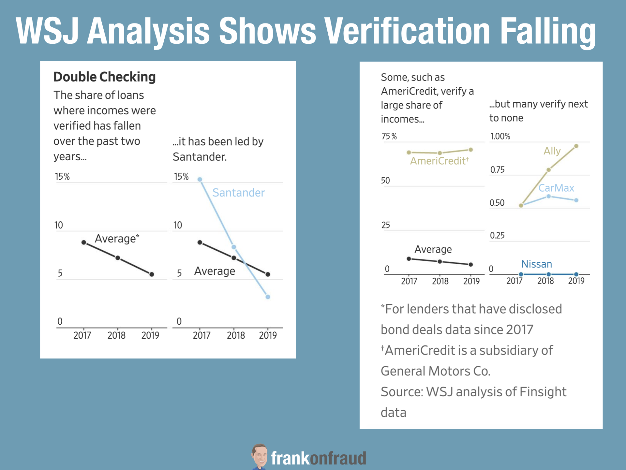 The article also indicated that, even in the face of rising income misrepresentation by car borrowers or dealers, that many lenders are rolling back their income verifications over the last 2 years.