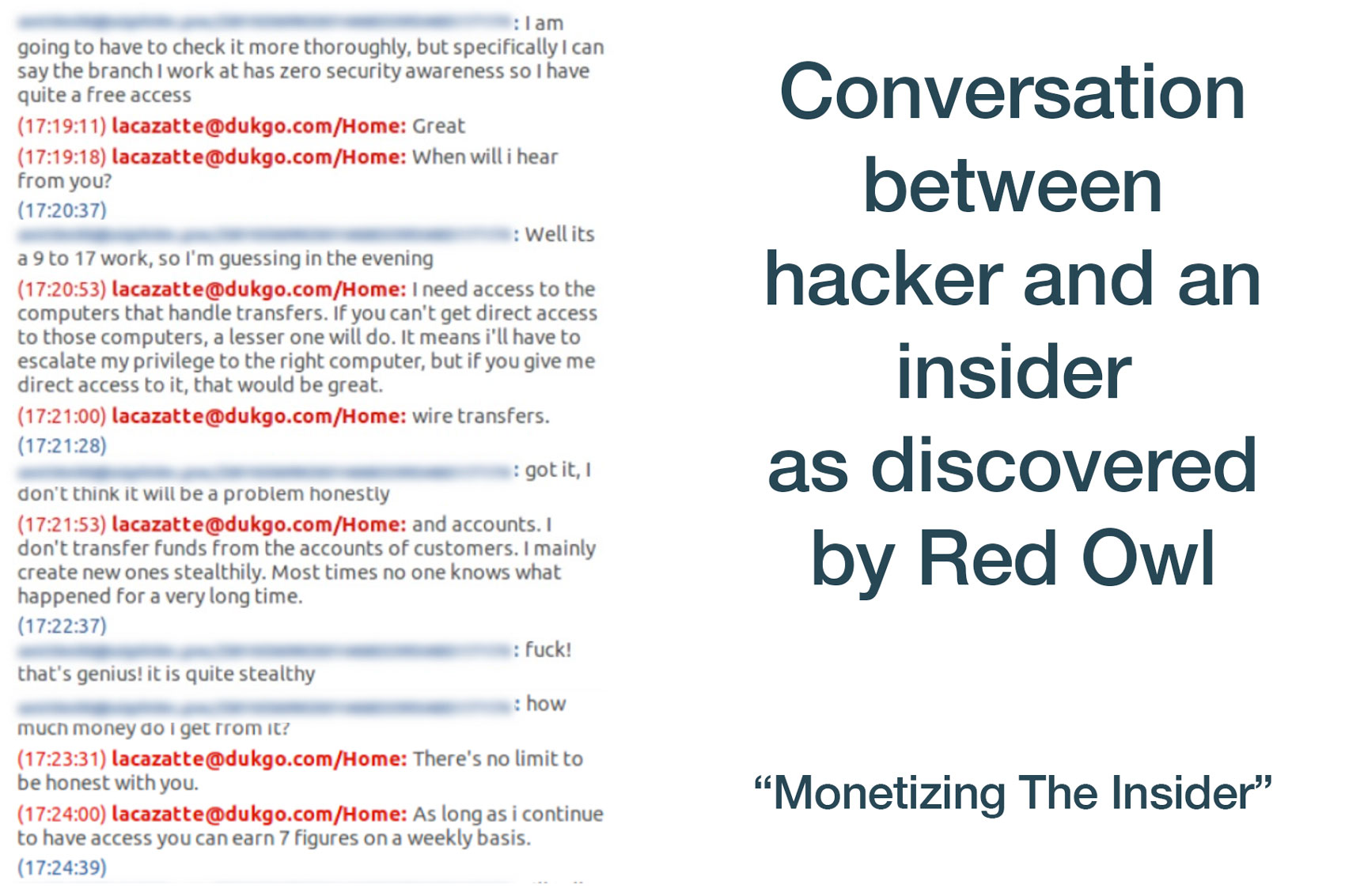 By having someone on the inside that they can control, hackers can substantially increase their payout. In this conversation, hackers are offering a 7 figure weekly income to an insider that helps them commit fraud.