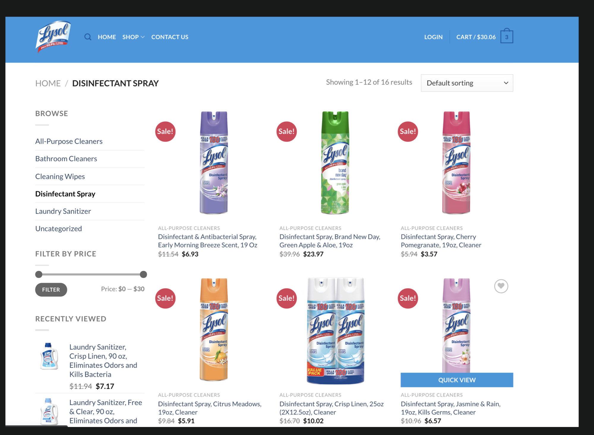 So I loaded up my shopping cart with 6 cans of Lysol for a surprising price of only $30.06 and free shipping.