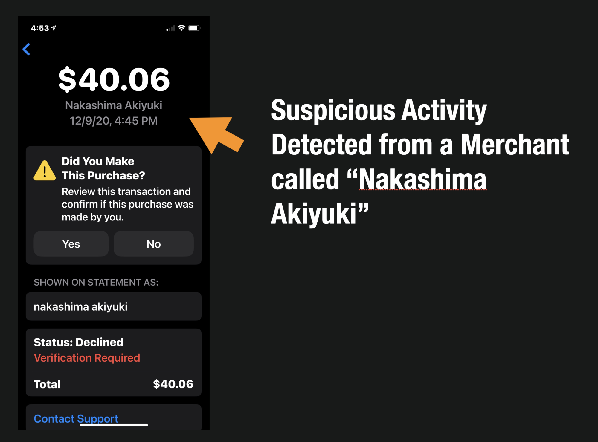 What the heck? I was shopping on Lysol. Who was Nakashima Akiyuki? And why did Apple Card think this transaction was suspicious? I shop online all the time and this was a relatively small transaction?