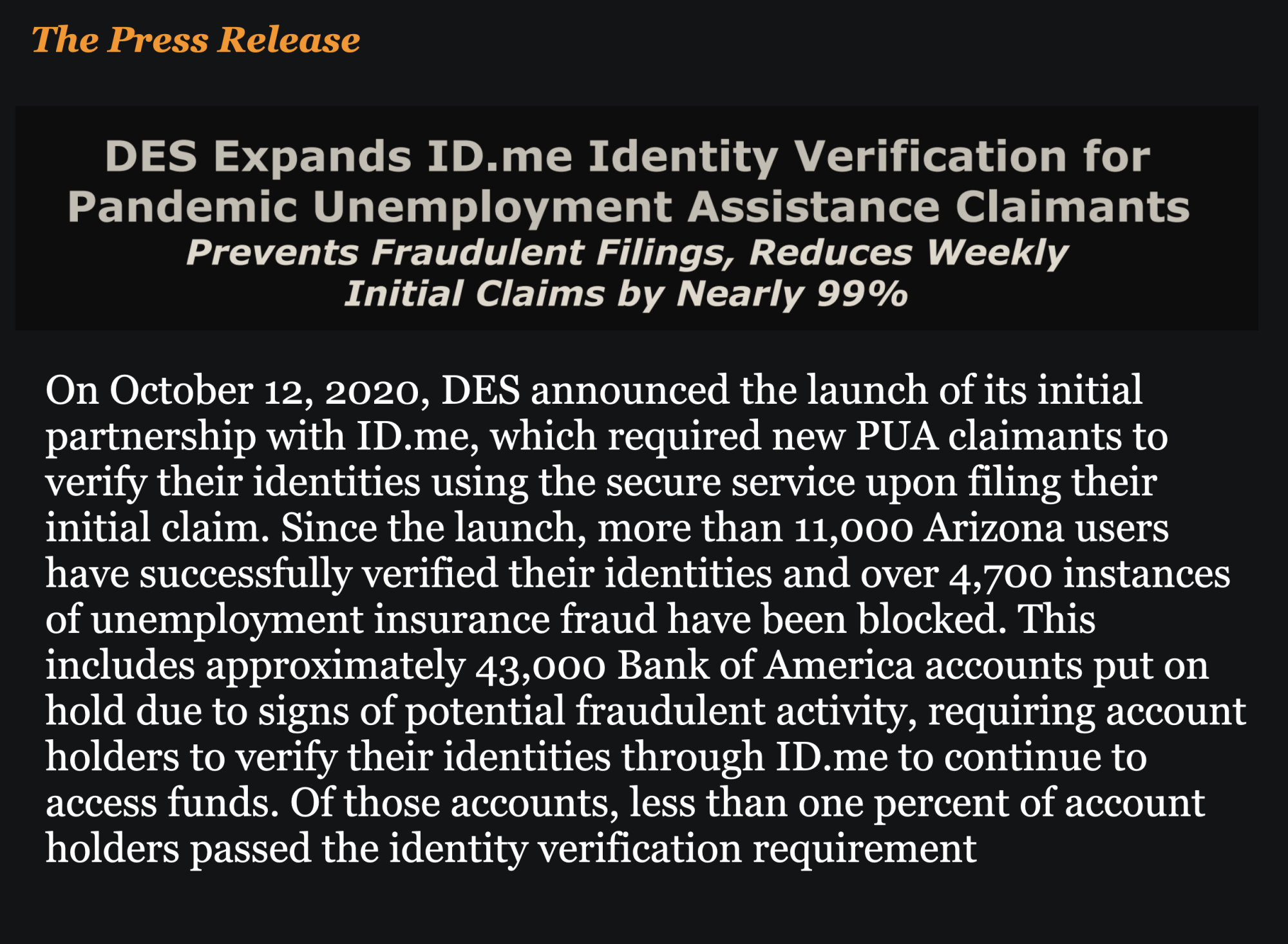 ID.me Fraud Checks in Arizona Dropped Fraud 99%