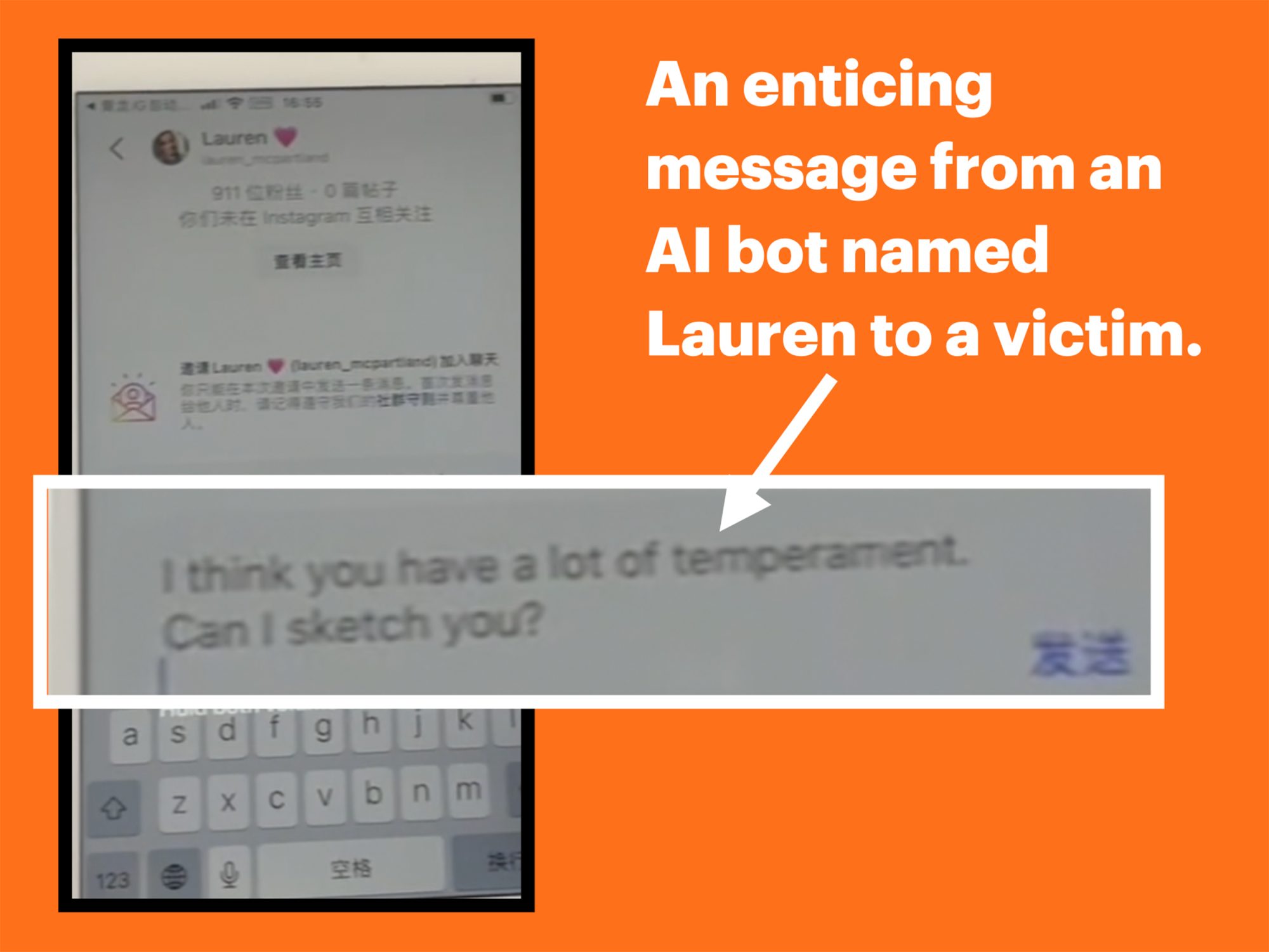 In one AI message sent from the automatic fan,, an AI bot named Lauren sends a message to her target. “Can I Sketch You”