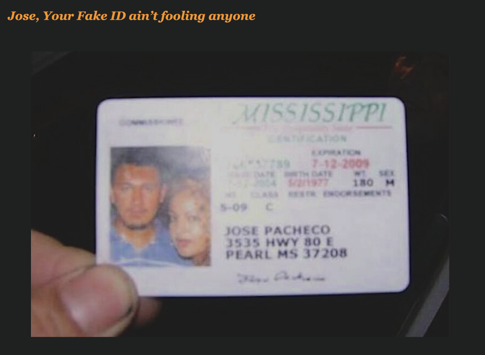 Today in fraud news – the winner of the worst fake ID in history goes to poor Jose Pacheco. Jose paid good money for a fake id, but he had one little problem – he had his girlfriend join him for the photo.